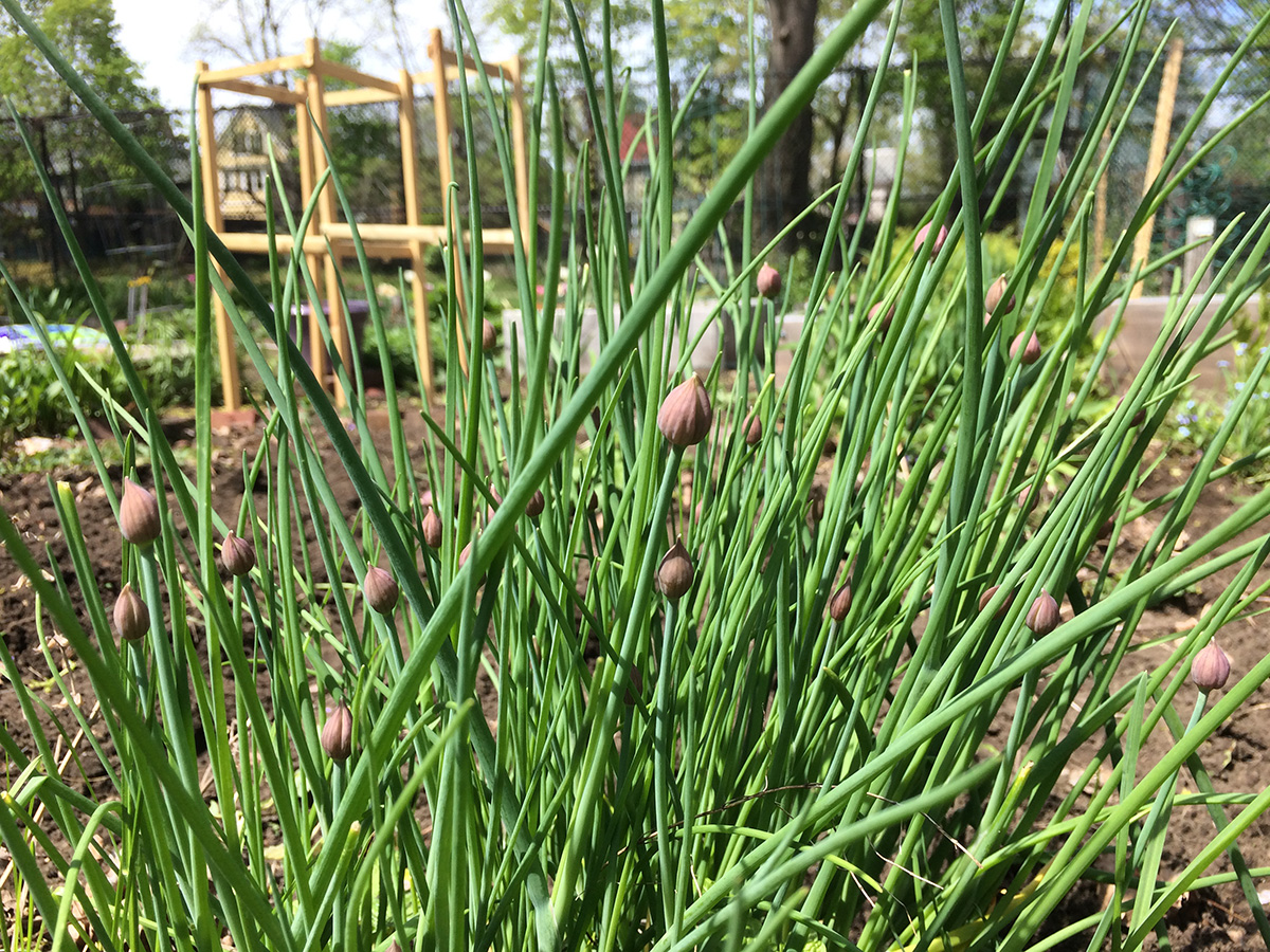 as the city hasn't started work excavating my old plot yet, i managed to salvage a few more perennials. i transplanted some more larkspurs/delphiniums and created a new border of garlic chives.