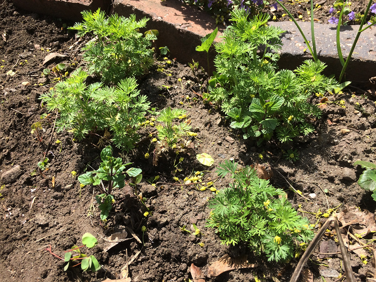 i did some weeding, pulled out some celandines, ground ivy, grass, and mint. there seemed to be a mixed variety of mints, so i didn't pull them all out, saving some until i can get a better id. there are enough preexisting perennials that i have less space for my own plants. but like i said, i don't want to pull anything out just yet, give it a season to see what comes up before making that decision.