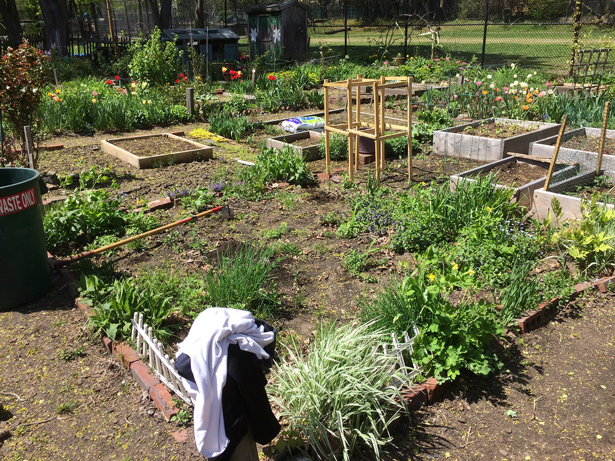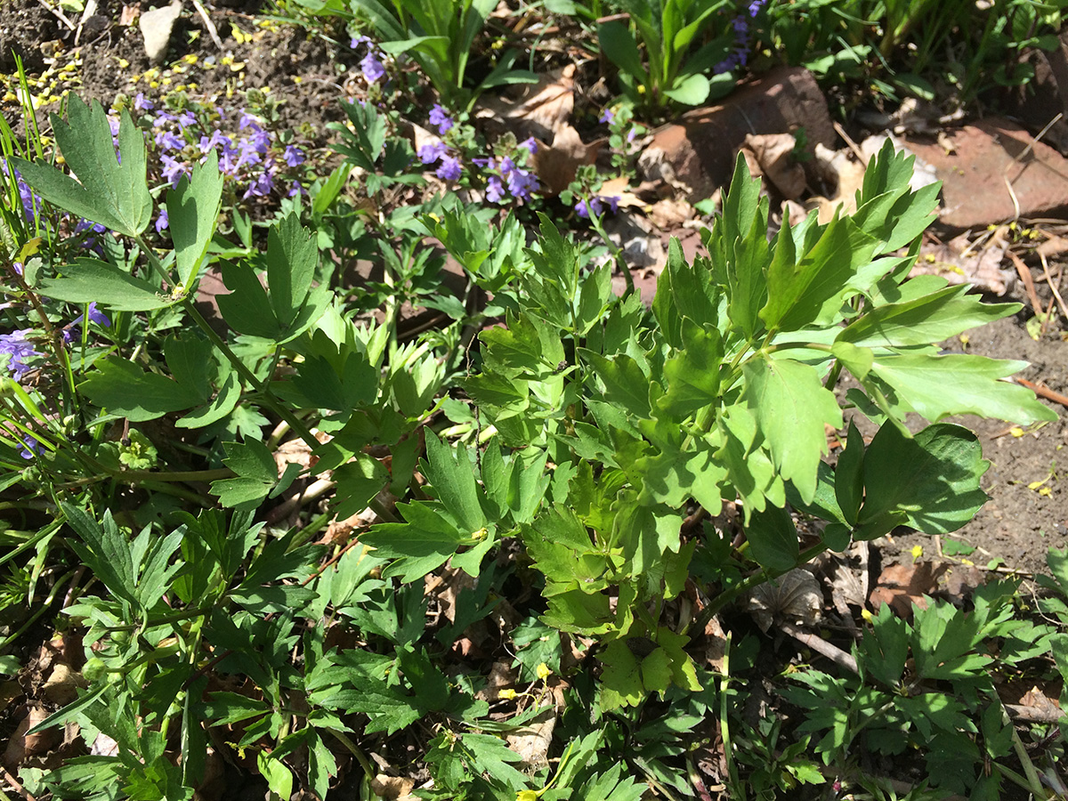 i went to the community garden in the afternoon, my first visit since the end of march, when i transplanted some larkspurs. the previous gardener contacted me a few weeks ago to let me know she finally moved out all her plants. one great thing about inheriting someone else's garden plot is discovery the plants already growing there. it's been more than a month and a lot of perennials have emerged.