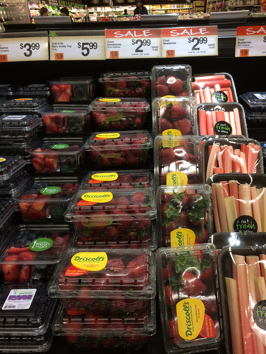 i biked home a bit before 4pm, fearful it might rain, although i heard it wasn't supposed to rain until the evening. i went to star market to pick up a few things, including some asparagus that was on sale ($1.99/bundle). i was going to get some cheetos but i wasn't sure if they were all sale (this star market is notorious for not properly labelling sale items), but i got some pita chips instead. they also sold strawberries: the exact same brand i bought, except these were $2.99/box, while i only paid $1/box for mine.