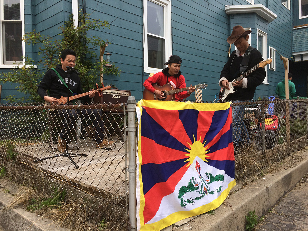 the final stop on my no-luck porchfest visit was at sargent street, all the way in winter hill, to see boston bhoepa band, a tibetan band. i got there by riding east on highland avenue then going north via walnut street by the somerville public library. it was a residential area that doesn't get a lot of street traffic hence the low turnout.