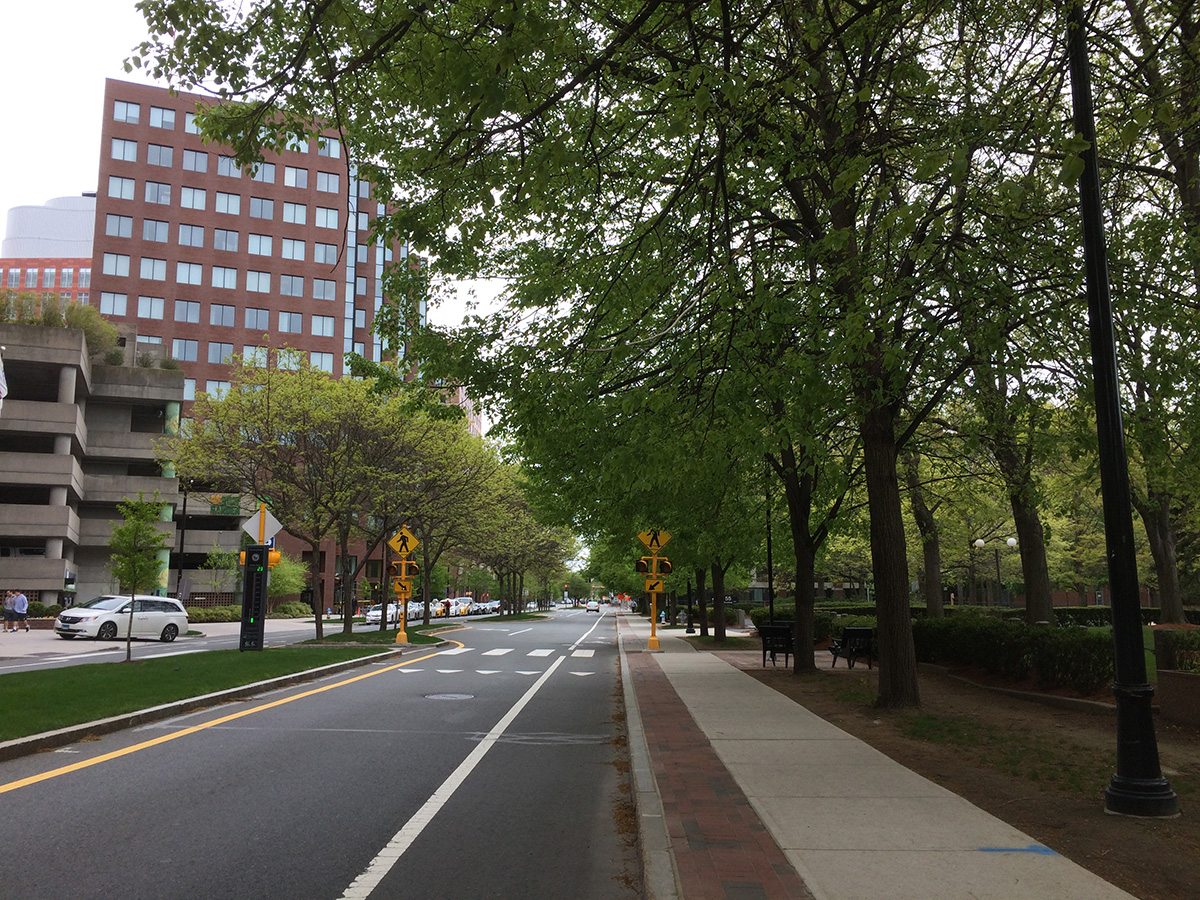 from there it was an easy ride into boston, with the exception of the charlestown bridge, that was some tricky navigating, until i finally had to pull my bike off the street and ride on the sidewalk for safety. that bridge is entirely bike-unfriendly, not for the timid to bike across it. once over the bridge, i found a bike path along washington street that finally brought me to haymarket.
