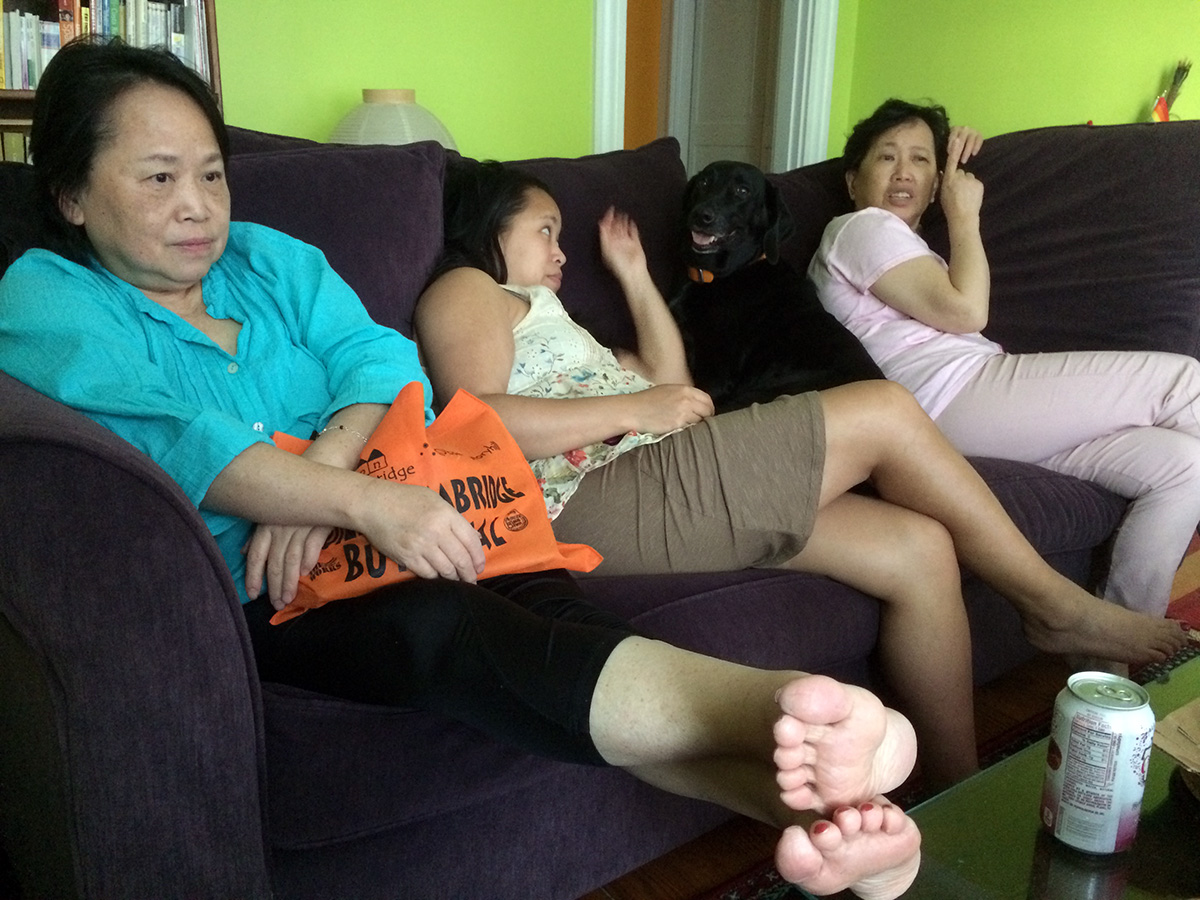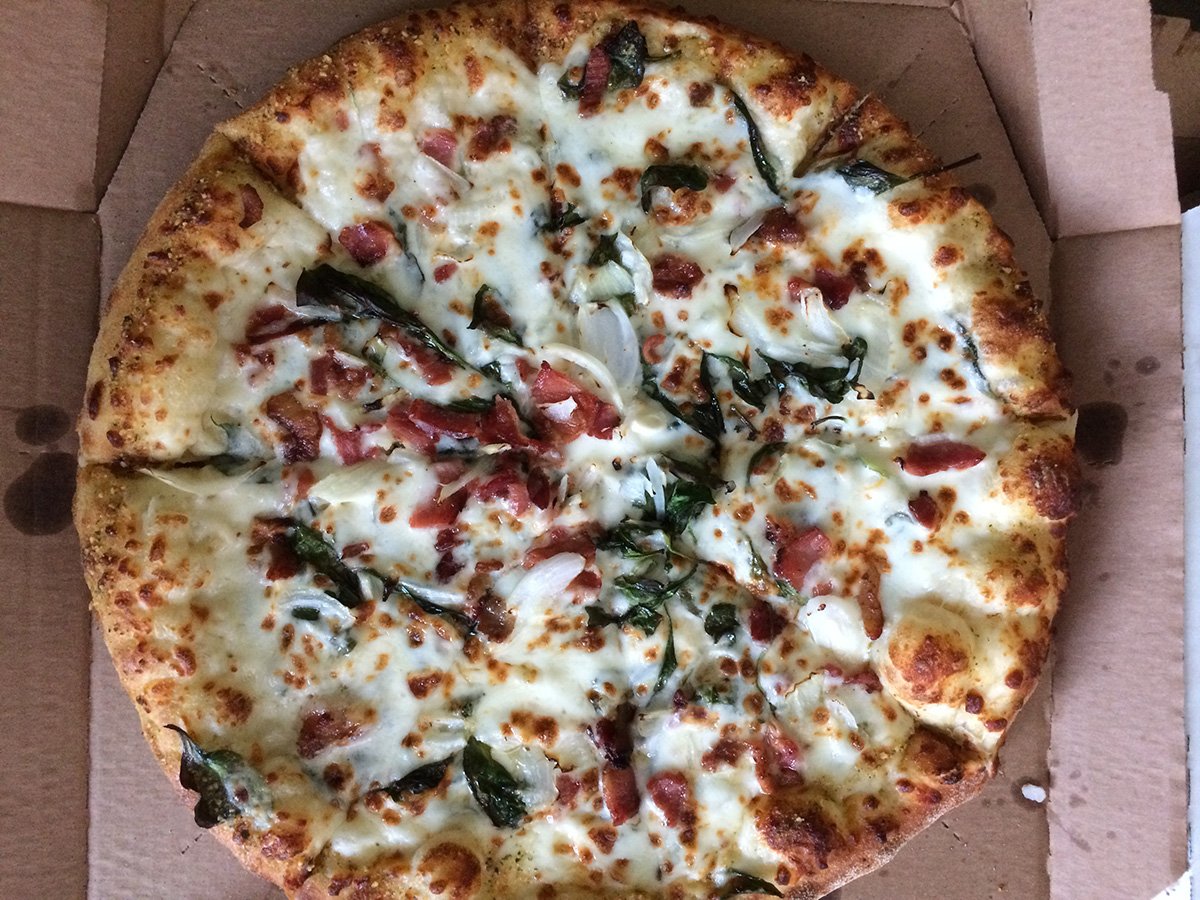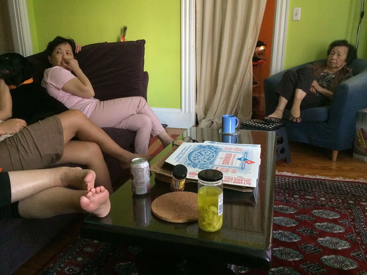my sister came to my place around 4pm, along with her dog, my mother, my grandmother, and my aunt. they've been meeting at the cafe this past week and decided to visit my place for a change of scenery. my grandmother wanted to eat domino pizza again so i ordered the same hawaiian and the bacon pizzas from last week from the nearest domino's (davis square). the pizza from last time was so delicious that my grandmother wanted to order a second hawaiian. the pizza shop actually called me back after i made the second order just to confirm i didn't make a mistake. my sister and i went to go pick up the pizzas at 5pm.