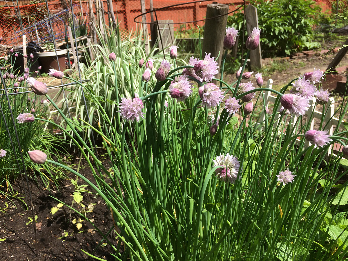 another hot day (officially a may heat wave after hitting 90°F+ again today), so i went back to the community garden to make sure my plants were getting enough water. i managed to dig up 2 perennials (a lemon balm and maybe an oregano) and plant a few zucchini seeds in a dirt mound.