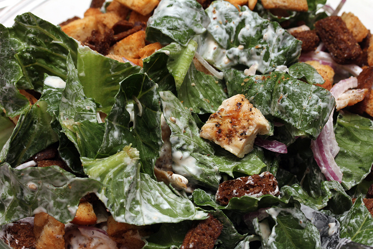 in the evening i began making my chicken caesar salad. i bought 3 large chicken breasts which i split into 6 pieces. grilling them on the foreman (with two fans operating to blow the smoke out the window) took an hour. the secet is thin cutlets, which need to be pounded flat as possible. there were a few thick cutlet pieces that took an incredibly long time to finish cooking. when karen finally came home after 9pm, i was sitting in front of the tv with a huge bowl of salad. i don't often eat salads, but occasionally my body gets a craving for something healthier. but when i do go salads, i make it a mansize salad and i add some much unhealthy ingredients (store-bought dressing, croutons, parmesan cheese) that i wonder if i negated any health benefits.