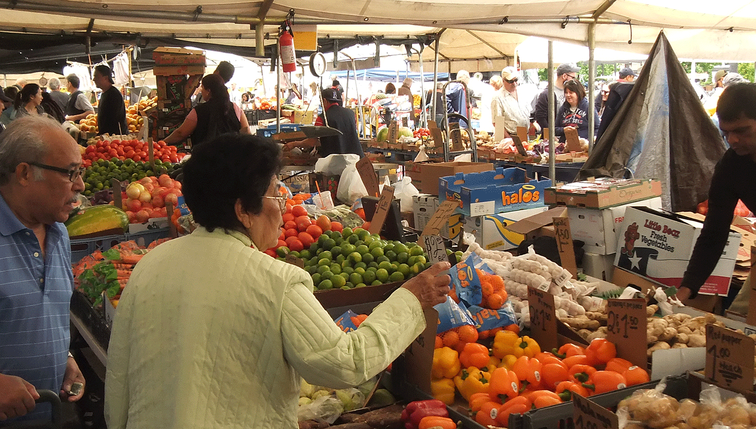 i went to haymarket in the afternoon to buy some more oranges. the arab girl whom i bought the gold nuggets from no longer had any oranges to sell. instead i bought gold nuggets from a different vendor (4/$1). i wasn't sure if they were sweet, but i took a chance and bought a dozen for just $3. i also bought some large clementines from the same middle eastern man i bought from for the past 2 occasions. i bought 2 bags for $5. finally, from yet another seller i bought 2 more bags of small clementines for $3. i also got 2 lbs. of pickling cucumbers for $1 and some cilantro and scallions.