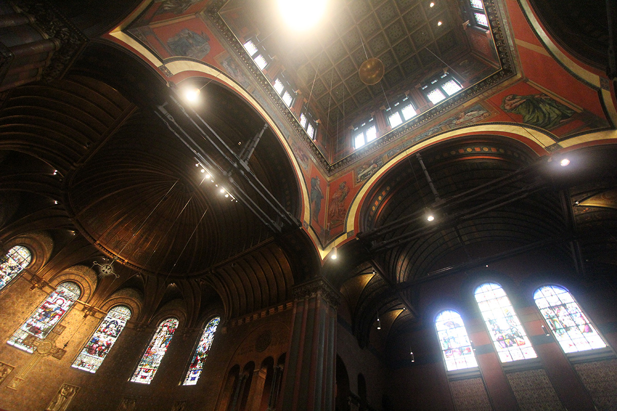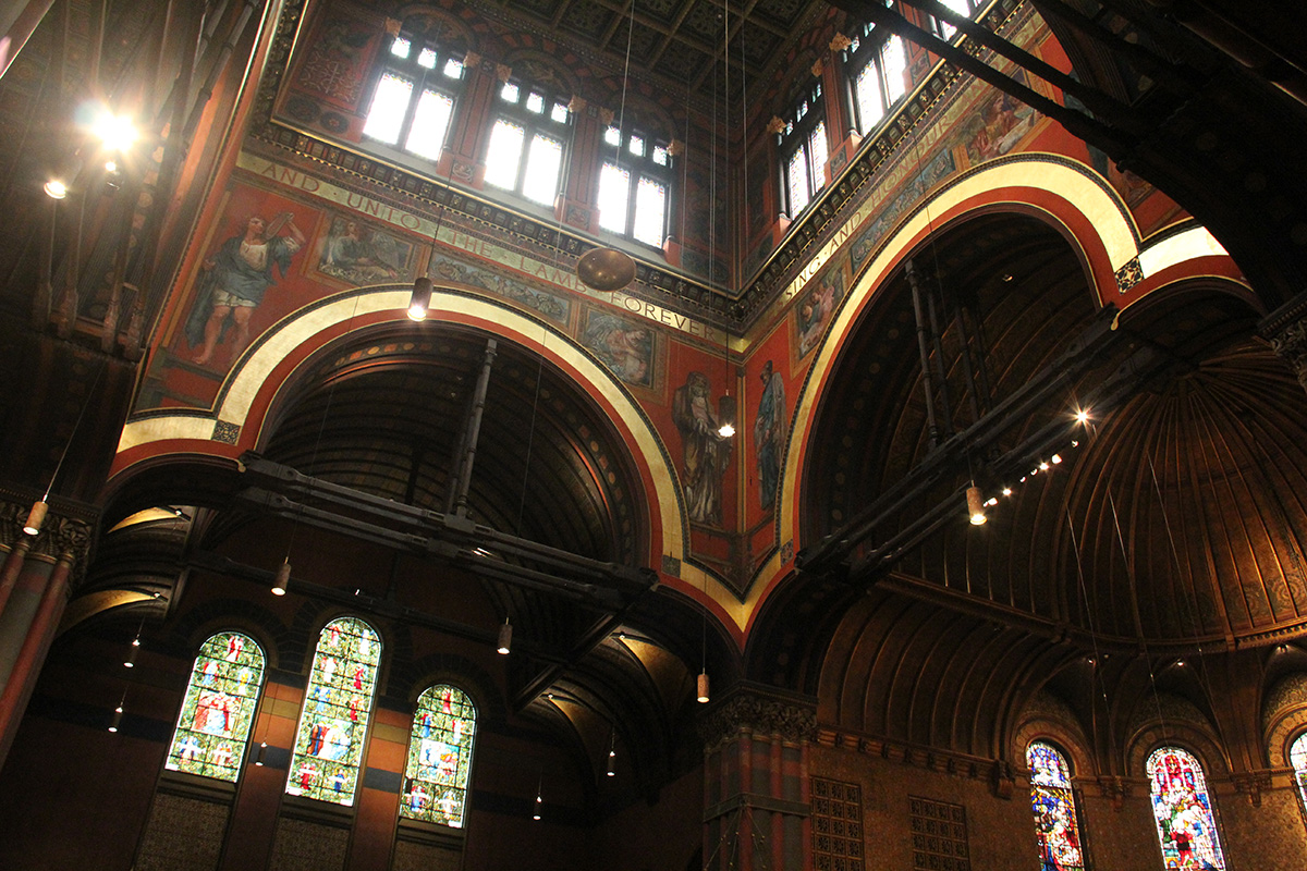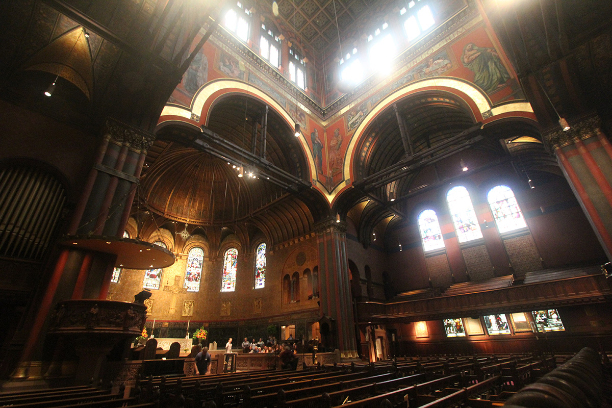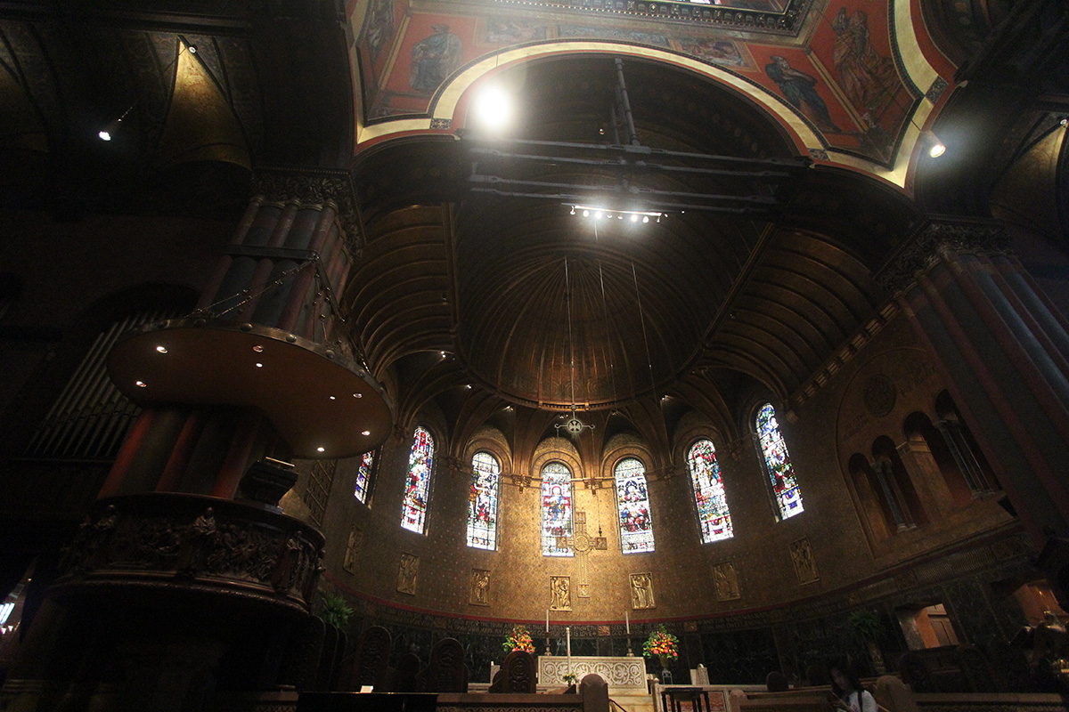 the first impression when i went inside was the same feeling when i visited the hagia sophia mosque in istanbul, how it feels more spacious inside than what it seems from the outside. the trinity church also had a similar feeling of antiquity due to the richardsonian romanesque architecture and the use of stonework and mural/stainglass/decoration art. (i took too many photos to post them all in the blog. check out my google photos album of trinity church for photos).