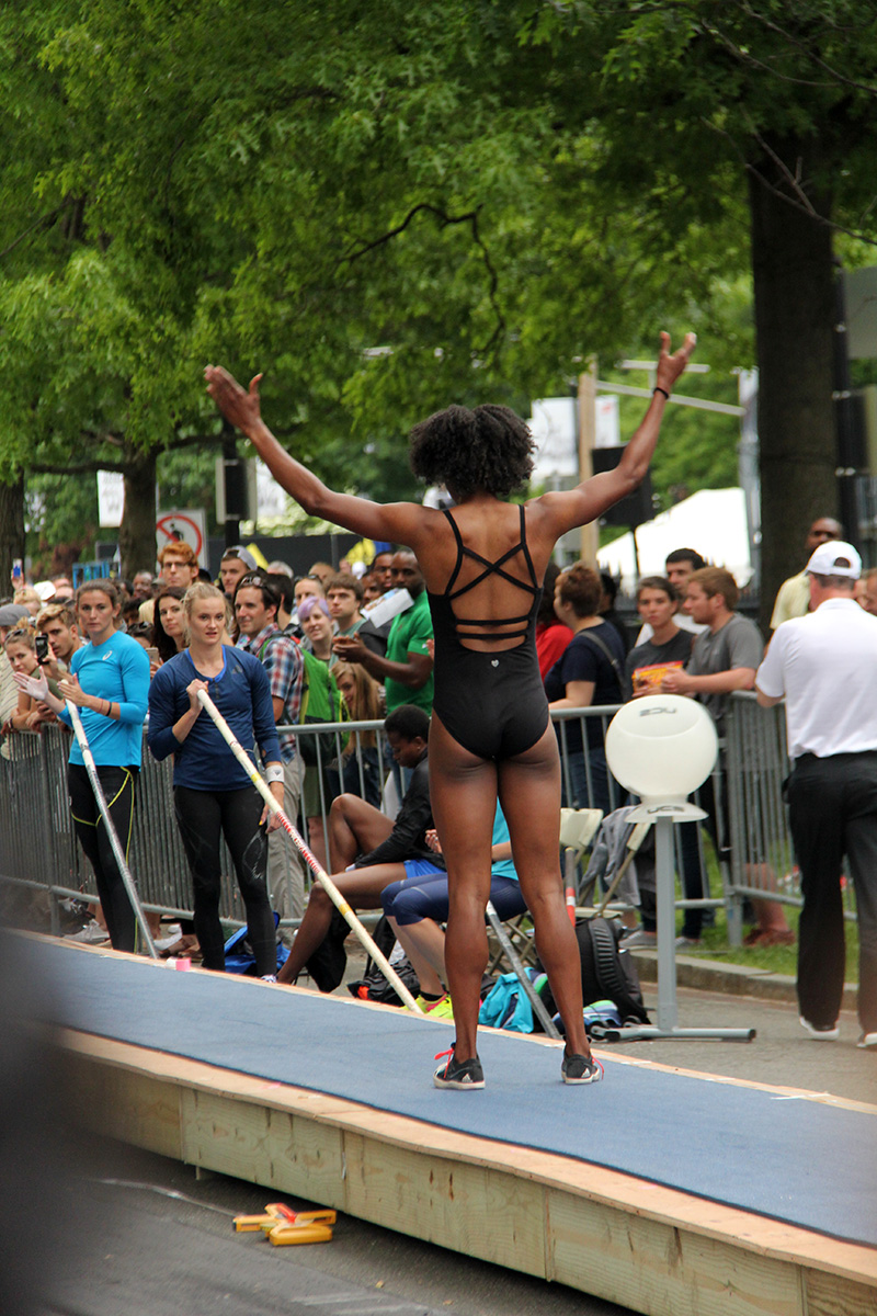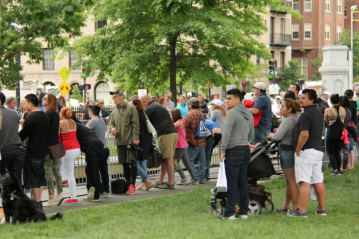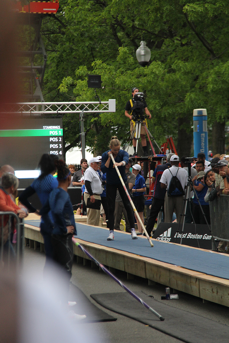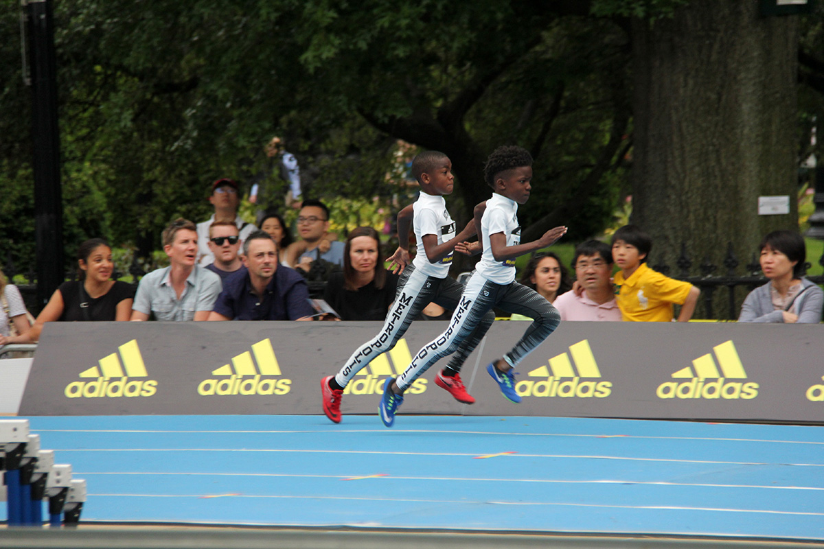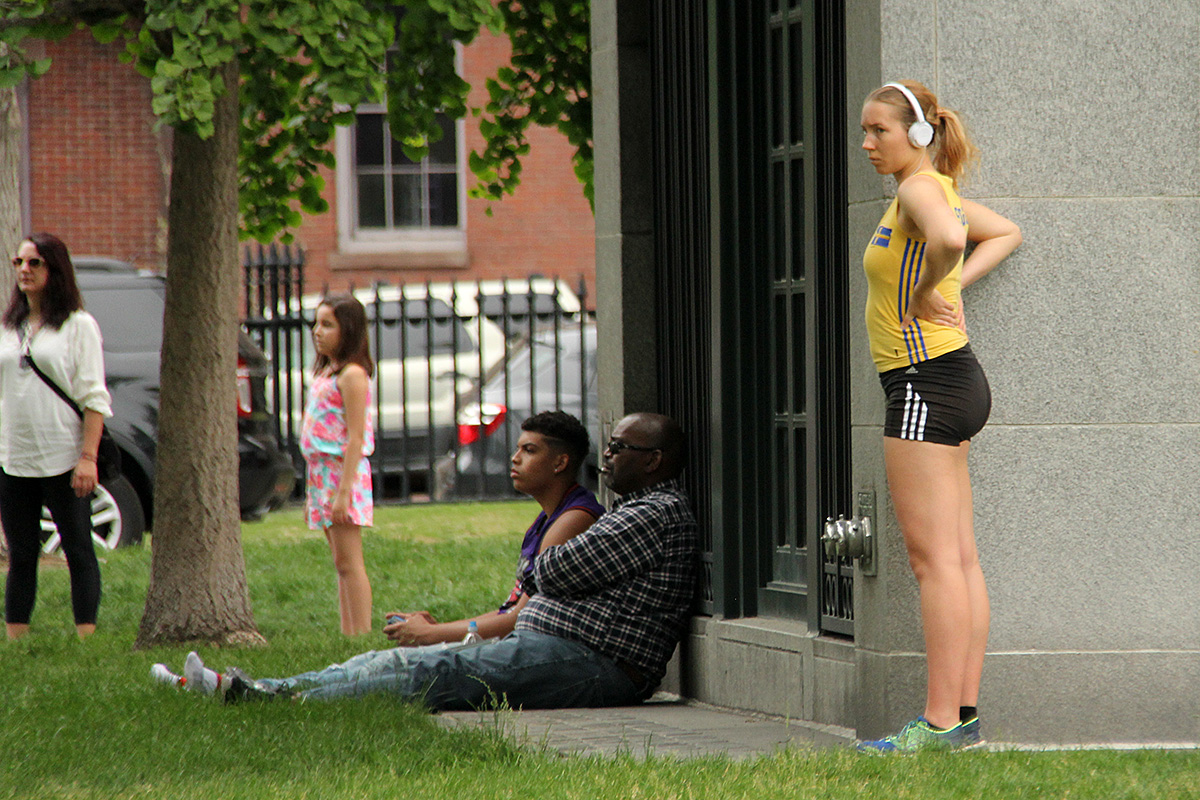 i was returning to cambridge via charles street (in hindsight, there are some storrow drive pedestrian overpass near dartmouth and fairfield street that i could've taken to get to the charles river, much closer to copley square) when i saw the police barricades and the crowd of people around boston common. i decided to check it out. originally i thought it was another protest, then it began to sound like some sort of organized event with an announcer. security was pretty tight, especially in light of the london truck attack just a few days ago. the new security protocol i've seen since the boston marathon is having large dump trucks strategically parked at certain streets to block the possibility of a ramming car attack. charles street by the parks were completely sectioned off, so i followed it inside the park. what it turned out to be was some sort of nike-sponsored track gathering, with raised racing platforms for running events like races, long jumps, hurdles, and even pole vault. there are so many things happening every weekend in the city, it's impossible to know them all. i stayed and watched a little bit, saw some kids racing (little kids are fast!) and watched as some women prepared to pole vault (nobody actually raised themselves in the air, they always stopped before they got airborne).
