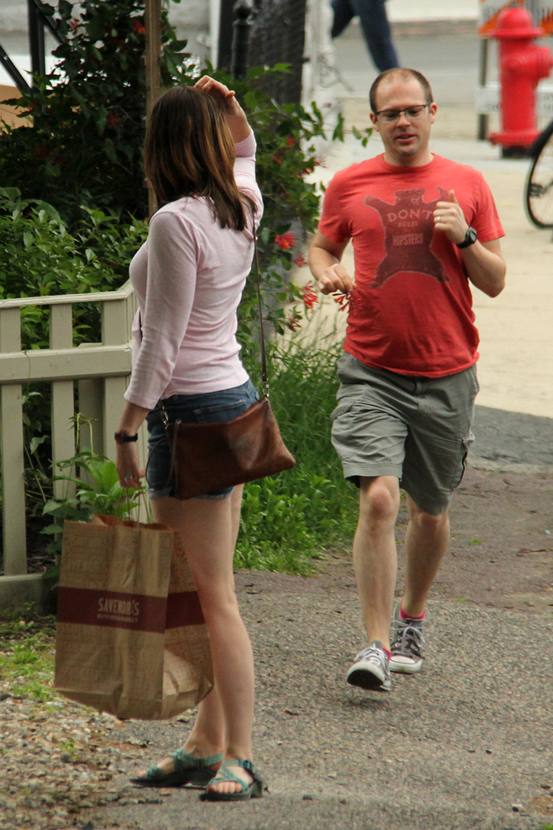 i left for boston around 1:30pm riding the faster fuji bike. i wore a pair of khaki shorts and a blue dress shirt with the sleeves rolled up. i arrived in copley square in about 20 minutes.