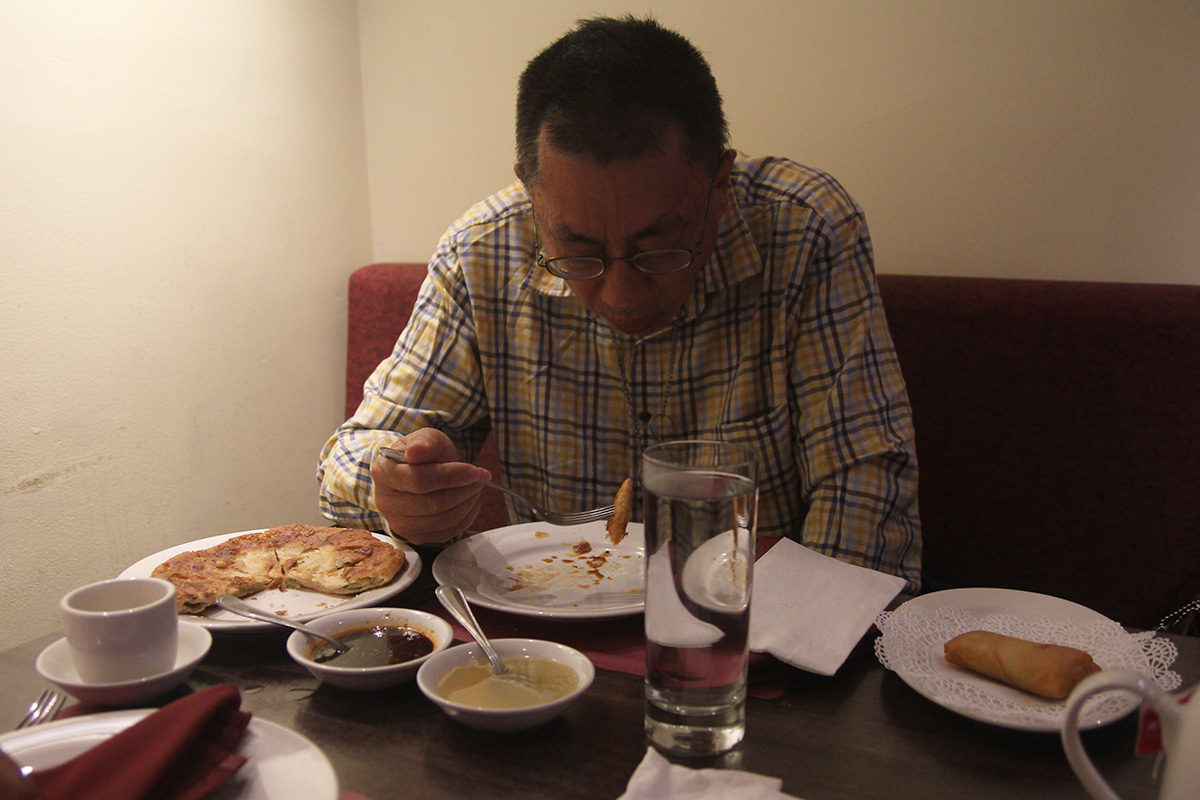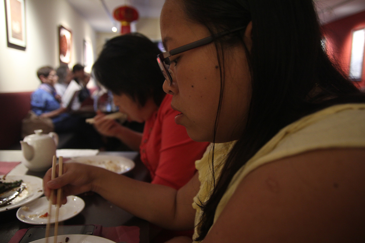 as evening drew closer, it began to shower. i left my place around 6:20pm and when i arrived i was a little wet. i was going to call and see if anyone had gotten there yet but i looked inside and saw that they were already seated. i brought my dSLR paired with my fast tamron f/2.8 17-50mm lens, figuring i need something for low-light photography. i should've brought my canon f/1.8 28mm instead, as it was awfully dim and i kept adjusting the settings to compensate (the 28mm has no zoom).