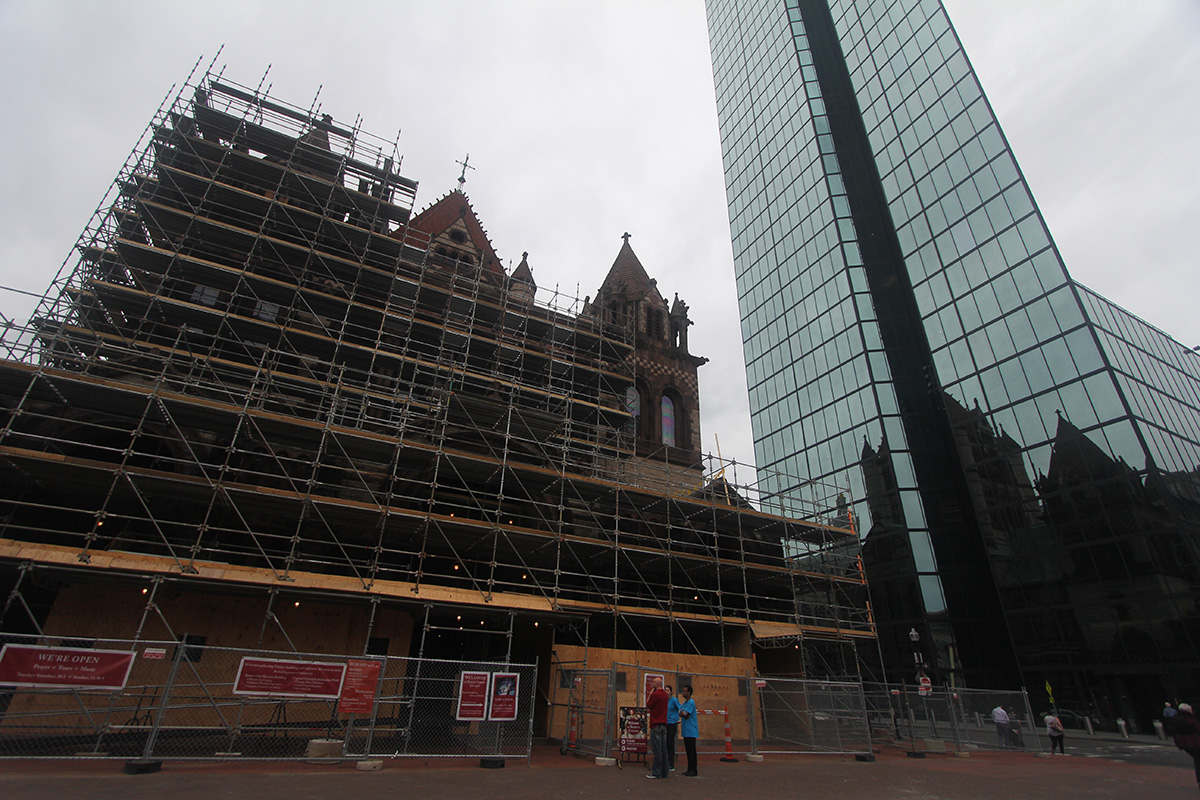 1 according to the official trinity church website: "Fences and scaffolding will be the first signs of work to be done, which will include roof repair, stone repointing and mortar repair, applying protective glazing for the stained glass windows, and cleaning and repair of the stone structure and the statuary of the West Porch. Interior work this summer will include the restoration of two La Farge murals, rewiring and repair of the electrical system, and upgrades of the fire protection and life safety systems." i can't find any information on the timeline for the repairs, but they expect interior work to start in the summer, so maybe they're following an aggressive schedule and the work will be finished by the end of the year.