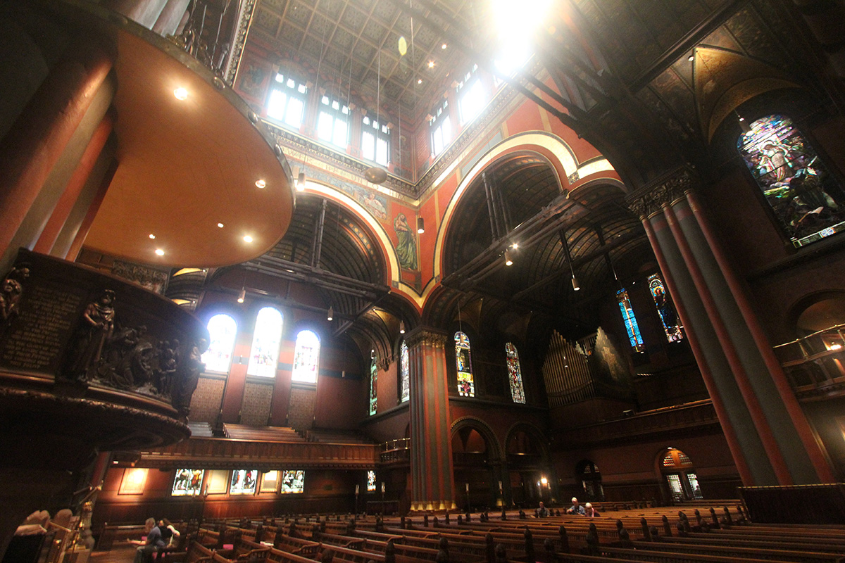 this weekend was common boston (not to confused with boston common), an open house festival of architecture and design. i'd never heard about this up until just a few days ago when i was searching for weekend activities. 58 buildings and spaces across the greater boston area were opened to the public to explore, but the one place that caught my eye was free admission to the trinity church in copley square. i've lived in boston for nearly 40 years but have never set foot inside the church because it cost money to get in. i've always been curious, and also assumed it'd be the sort of place photography wouldn't be allowed, because i don't ever remember see photos of the inside. so i was determined to see the church this afternoon.
