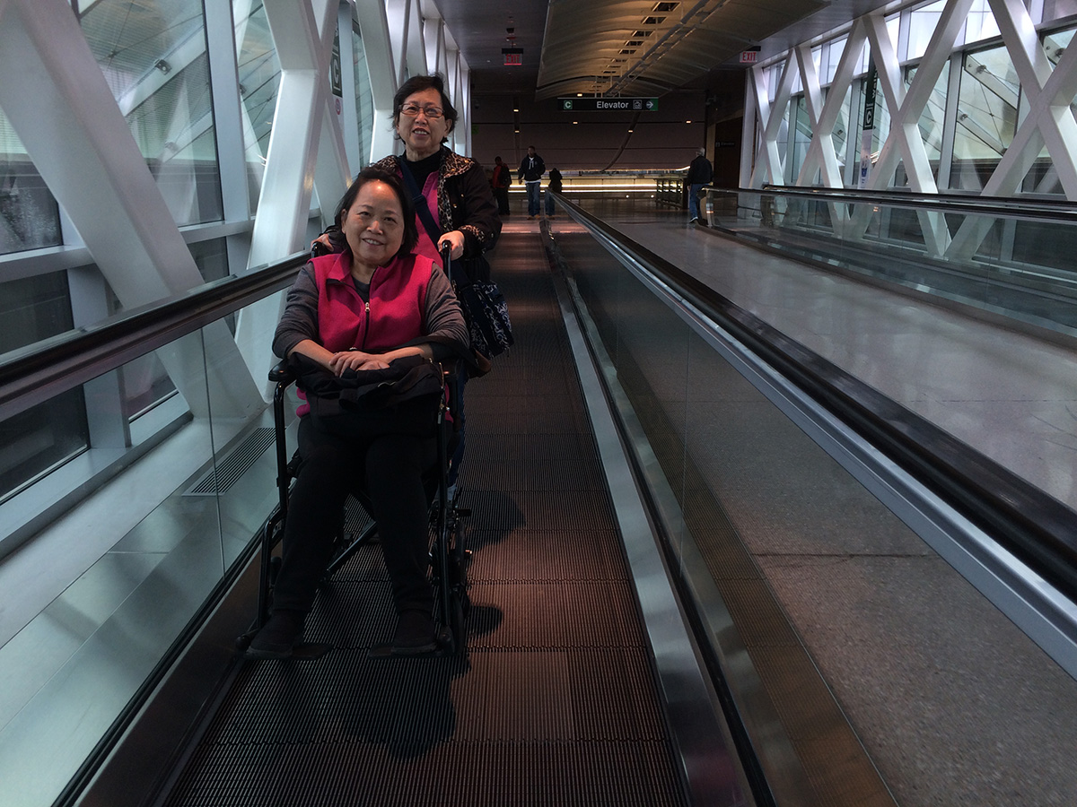 originally scheduled to leave at 2pm, we pushed it back to 2:30pm as we didn't want to get to the airport too early. my mother came with me as we drove to my 2nd aunt's place at 2:25pm. my mother went into the apartment and got both of them out, my aunt pushing my grandmother in a wheelchair. though 90 years old, i still don't like seeing my grandmother in a wheelchair. not that she can't walk, but she walks slow, either just from age or simply afraid of falling. my grandmother used to walk faster than anyone i know, leaving everyone else far behind her as she naturally speedwalked up ahead. that's the way i always remember her.