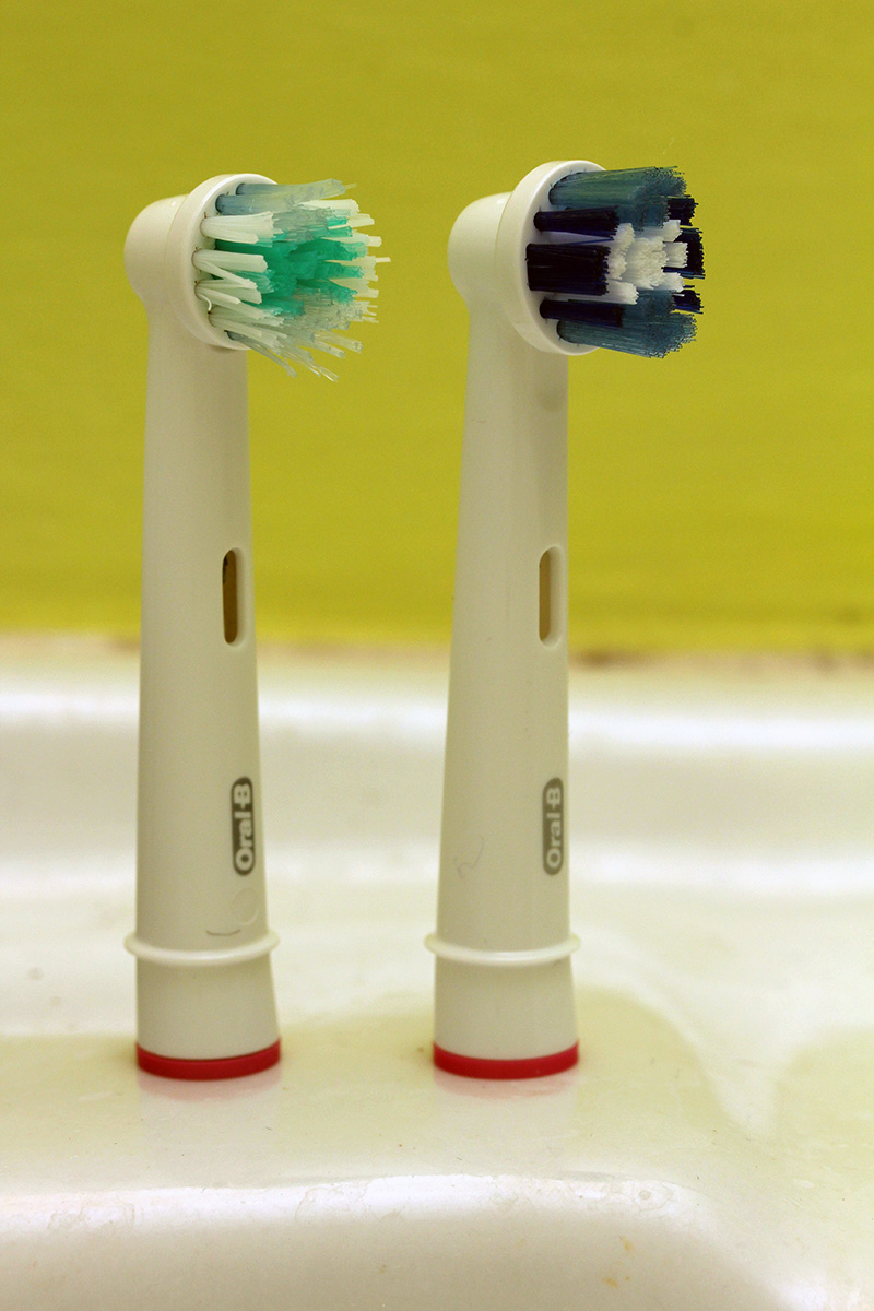 my new oral-b electric toothbrush heads arrived. i didn't realize how badly i needed to replace the head until i compared the old with the new. of course getting a new "toothbrush" meant a renewed interest in brushing my teeth. not sure if it's just the placebo effect, but my teeth felt cleaner afterwards.