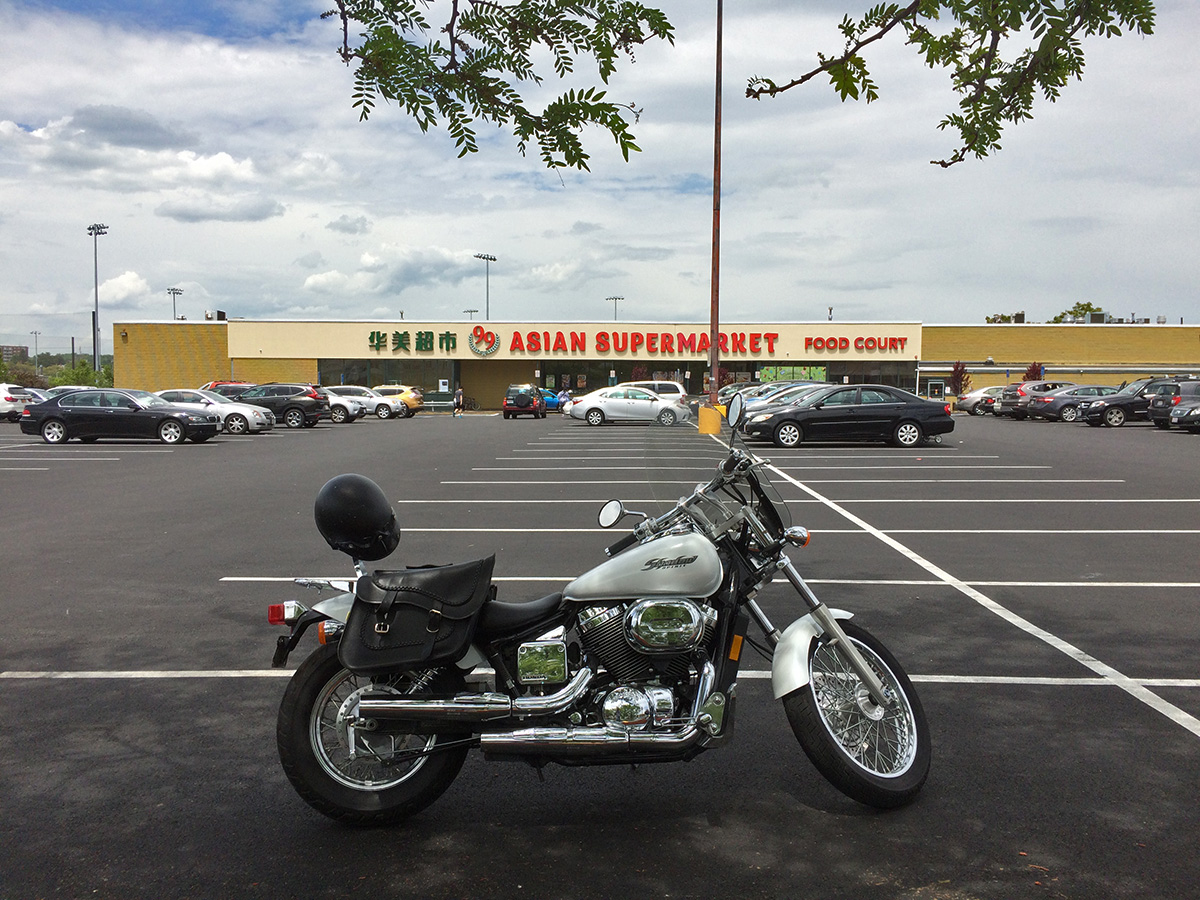 when i came out i saw a minivan parked suspiciously close to my motorcycle. it was unusual because there was plenty of other parking, but this car just had to be next to my bike. maybe he wanted to park in the shade, but there were other shady spots in the parking lot. when i got close i saw the guy was still inside, an old black guy listening to the radio. as i loaded my groceries into my saddlebags, this guy kept watching what i was doing, to the point where i stared him back, but he didn't look away. instead of saying something i just ignored him while i checked the directions on my phone. his wife showed up soon afterwards and they finally left.