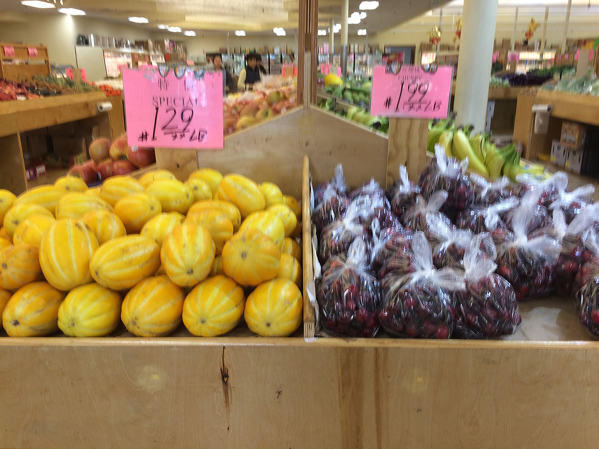 99 asian supermarket seemed large from the outside and it was large on the inside as well. it may be one of the largest asian supermarkets that i've been to in the greater boston area. i picked up a few things, a bag of preserved hawthorn fruits ($2.99), a bag of cherries ($1.99/lbs.), some korean golden melons ($1.29/lbs.), a bottle of goya guava soda ($1.09), and a stick of lotte black gum ($1.89). there was also a small food court but with only 3 kiosks and nondescript asian fast food.