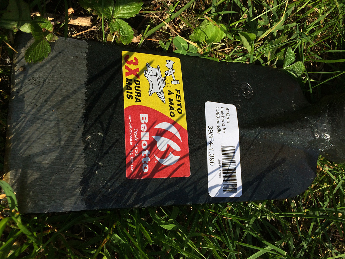 my father's grub hoe arrived a few days ago. it's the traditional digging tool in china, although hard to find here in the US. he ordered it online and was surprised to learn the manufacturer was chinese but rather brazilian. he assembled the hoe and went outside to dig out some underground bamboo.