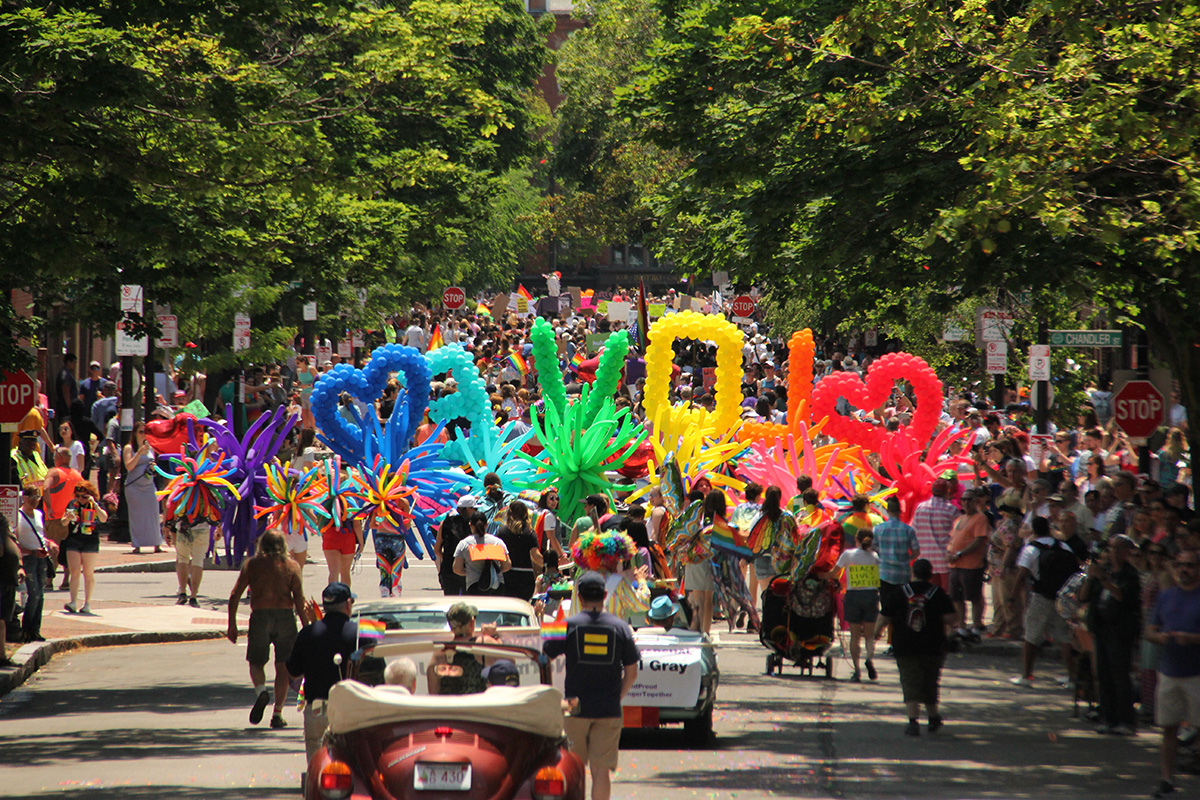 i was told a while back that pride was a march not a parade. but in light of all the achievements that've been made for LGBT rights - from anti-discrimination laws to legalized gay marriages to ongoing battles over issues like transgender recognition - pride has become more of a parade, more so than ever. in fact, that's what the organizers call it now, the boston pride parade. it's also become quite the spectacle, and maybe the message becomes diluted, as any organization or company can support a float and join the parade. pride parade seems like an endless procession of church and school groups, corporations (supermarkets, banks, cable and phone companies, biotech firms, food manufacturers), and politicians.