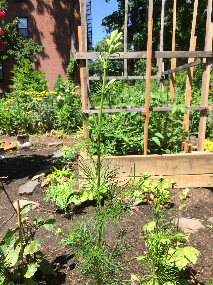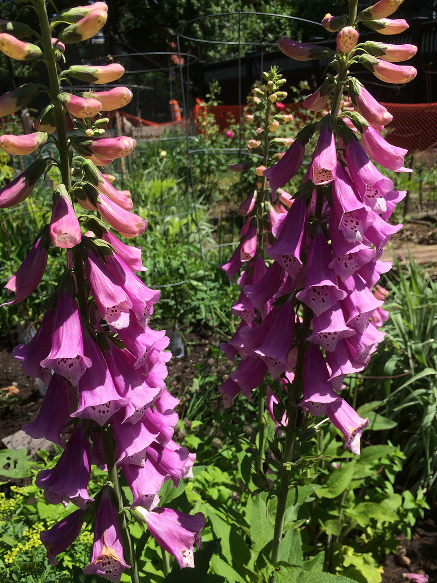as for my own garden plot, my larkspurs are doing well, taller than any of the other "adopted" larkspurs i've seen in other plots. they should be flowering soon. i also seem to be the only gardener with foxgloves, and i didn't even plant them, they were left behind by the previous owner. coincidentally, both larkspurs and foxgloves are poisonous. also poisonous: monkshood, which i also have in my garden.