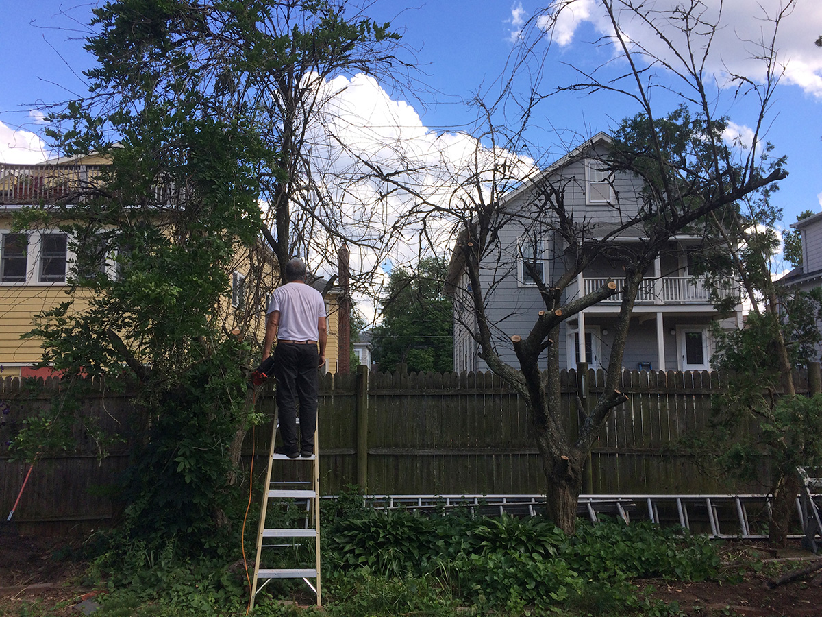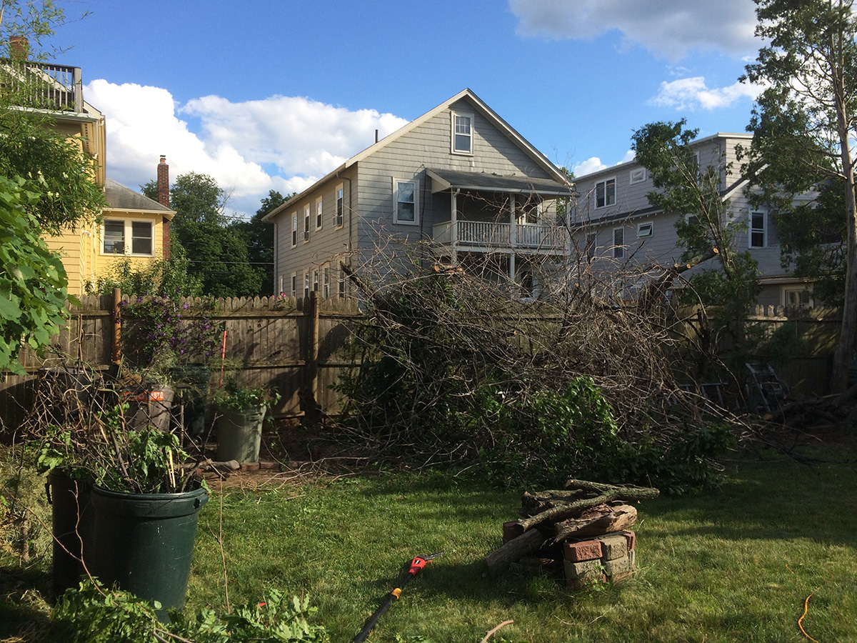 now that the two trees are completely gone, there's nothing to screen the house from the backyard neighbors, so it's a bit disconcerting. it will take at least a few years of growth to have trees big enough to block our view of the neighbors. that's why the bamboos were such a great screen, in a single year you could have stalks tall enough for a screen, but they're just too much of a hassle to keep.