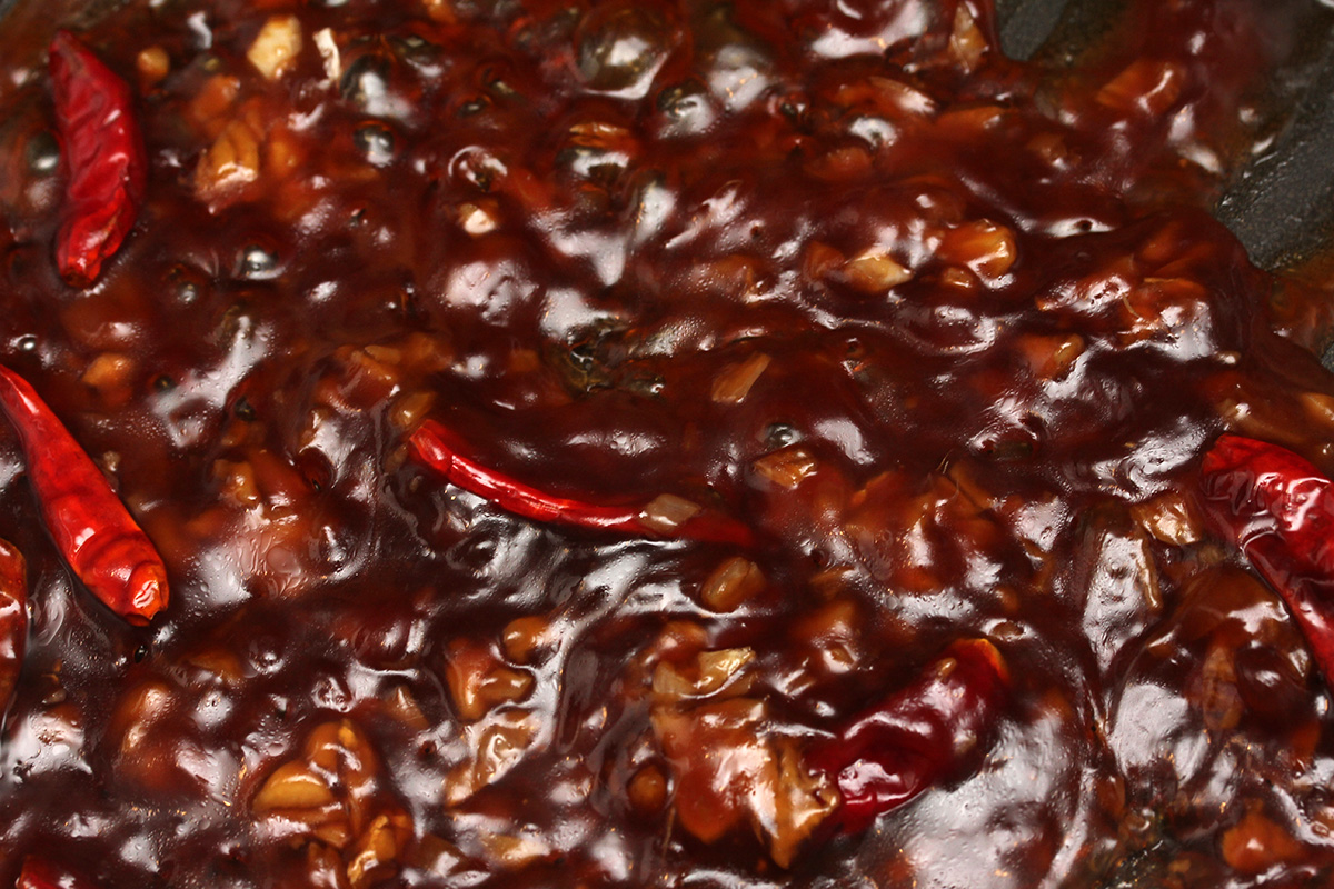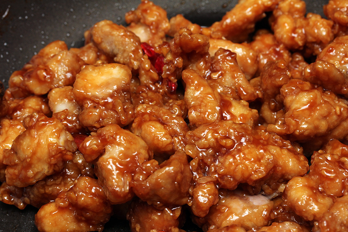(sauce): 1 tbsp vegetable oil 1/2 cup dried hot peppers 1 tsp ginger, grated 2 cloves garlic, chopped 1/4 cup rice wine 1/4 cup soy sauce 1/4 cup rice vinegar 1/4 cup sugar 1 tbsp corn starch slurry |