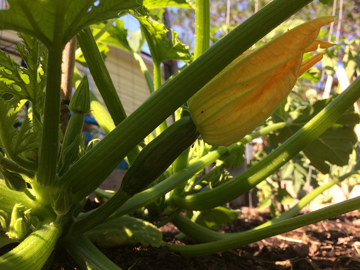 i noticed the zucchini plant in RB1 already has some small immature zucchini fruits. growing zucchini is a race against time, as eventually they succumb to squash vine borers which will then kill the entire plant. but thankfully zucchinis grow amazingly fast, so we can expect to get a few good zucchinis before that happens. also i'm pretty good at spotting borer eggs, but they're also easy to miss because they're super tiny.