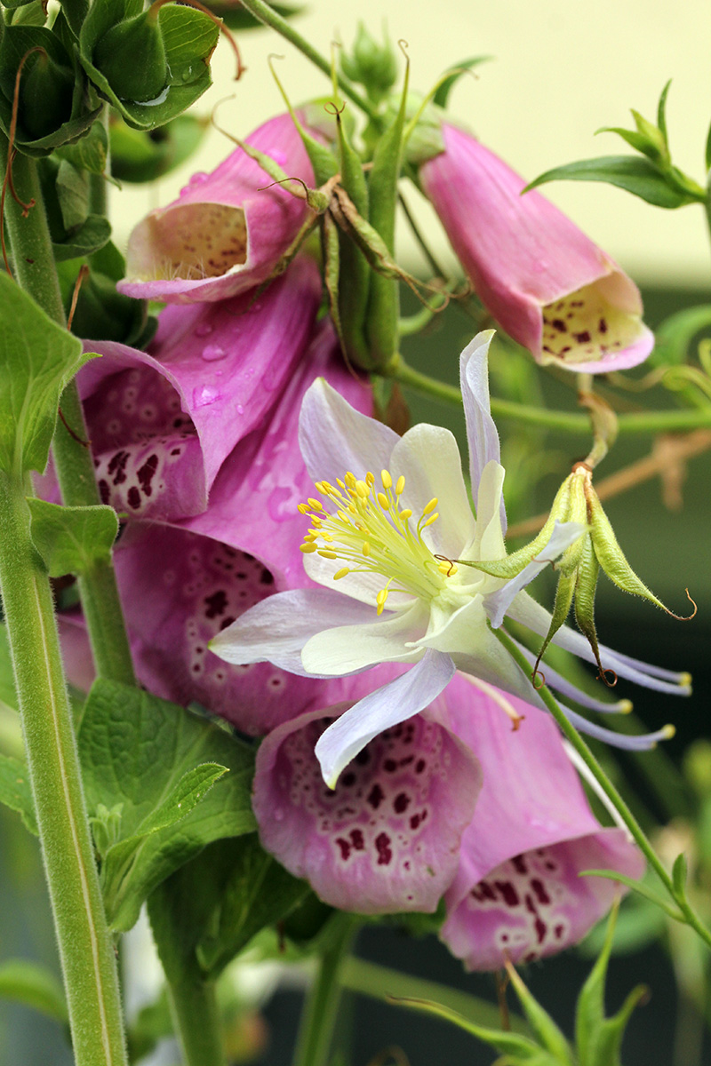 columbines continue to blossom. they've been blooming since the end of may, so more than a month, and there still seems to be a few more weeks of flowering, if not more. thought i love the shape of their flowers, they seem too delicate (although a perennial, though i heard short-lived, 3-4 years typical lifespan), and the flowers aren't as abundant as some other flowering perennials.