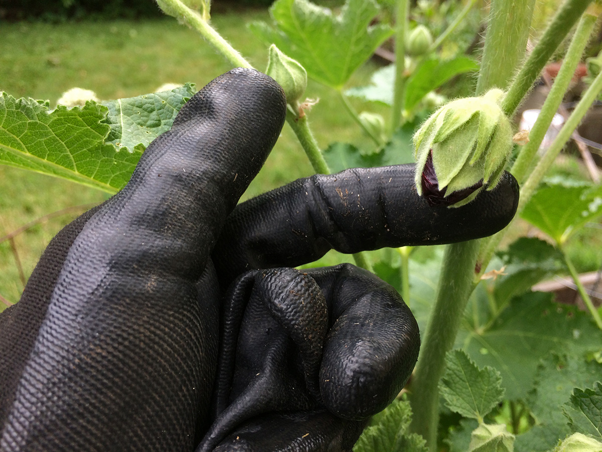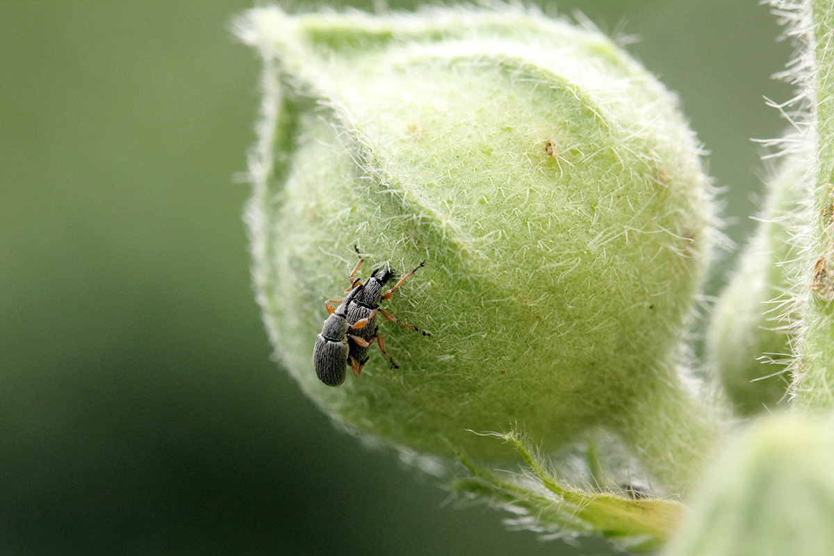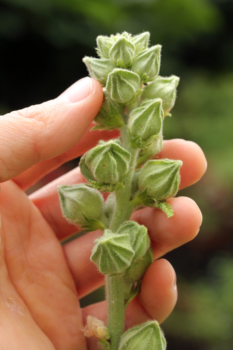 the belmont backyard hollyhocks are about to bloom. for some reason they also seem to attract a certain type of weevil which only seems to feed on these hollyhocks. i killed a few but they're tiny and good at hiding and escaping (by dropping off the flower).