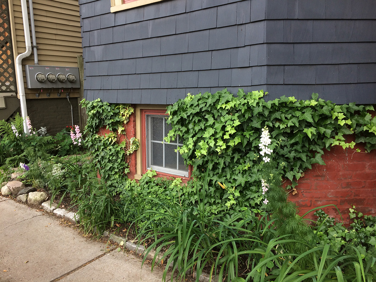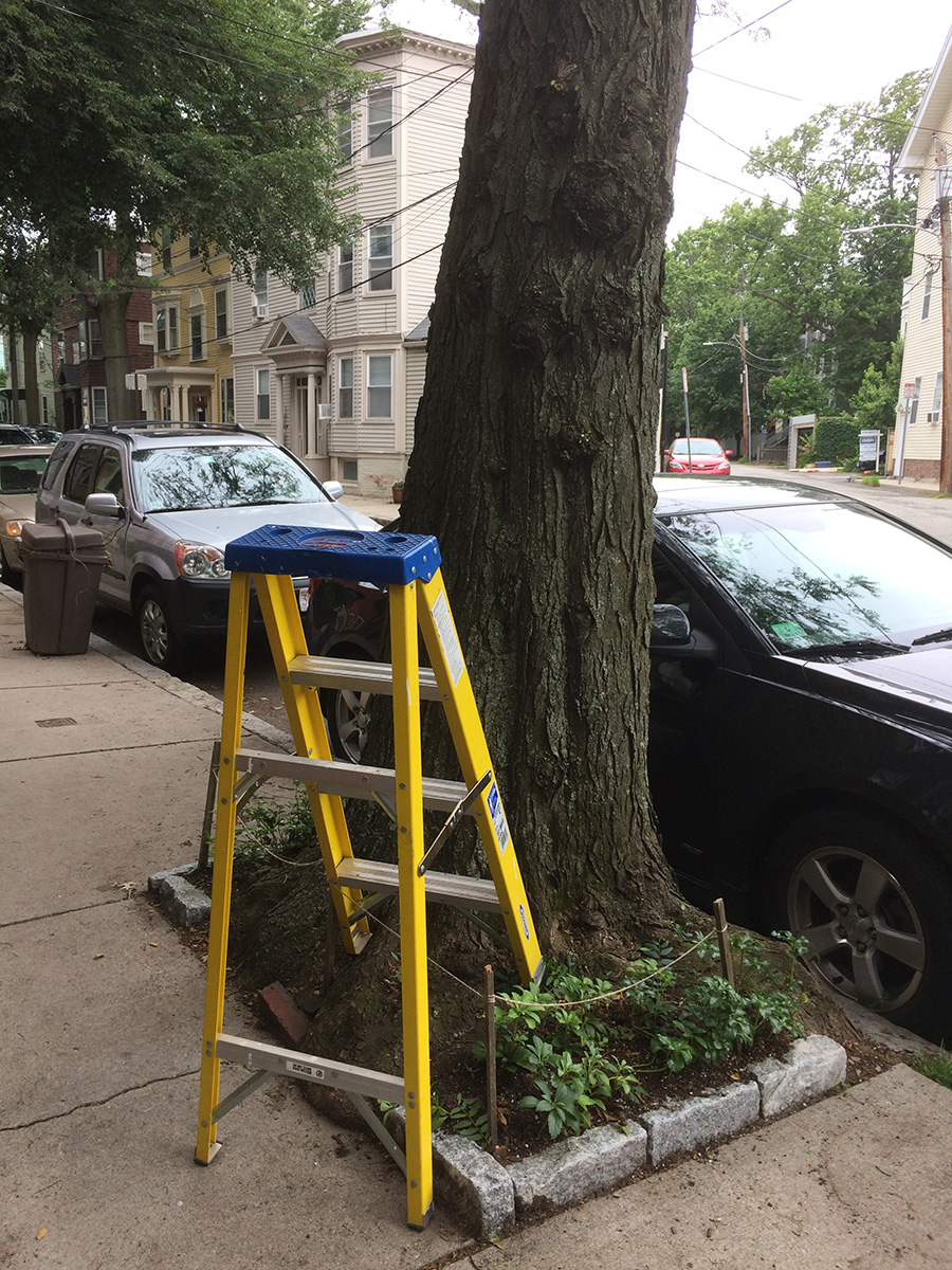 every year the tall locust tree outside my house sends out new branches from the middle of the trunk. and every year i cut them off because they prevent me from getting a clear view of my street. in the small strip of front yard the larkspurs have been blooming for over a week now. the trick is to get them to sow in the dirt and have new seedlings growing in the fall and overwinter into next season. larkspurs look best when they're in a dense clump. having them survive in the shady front yard means they can definitely grow there. i then went into the backyard and adjusted the large transplanted hosta i planted weeks ago. it went into the soil lopsided, so all the leaves were leaning in one direction. i readjusted the rootball so now the plant has a more natural spread.