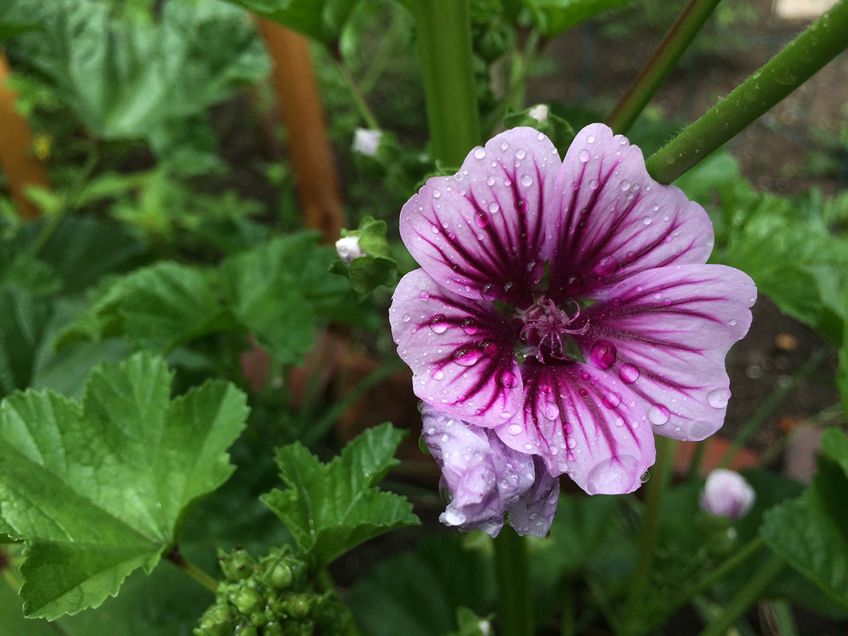 i then biked to the community garden to water my plot. it hardly needed any watering, as it was the most water saturated plot compared to nearby neighbors. the original malva zebrina flower had already wilted in just 2-3 days. i was under the impression they last for a while, but i'm not too worried since there are plenty more flower buds to replace it. more flower means more seeds and i hopefully i can grow a whole patch of it next season.