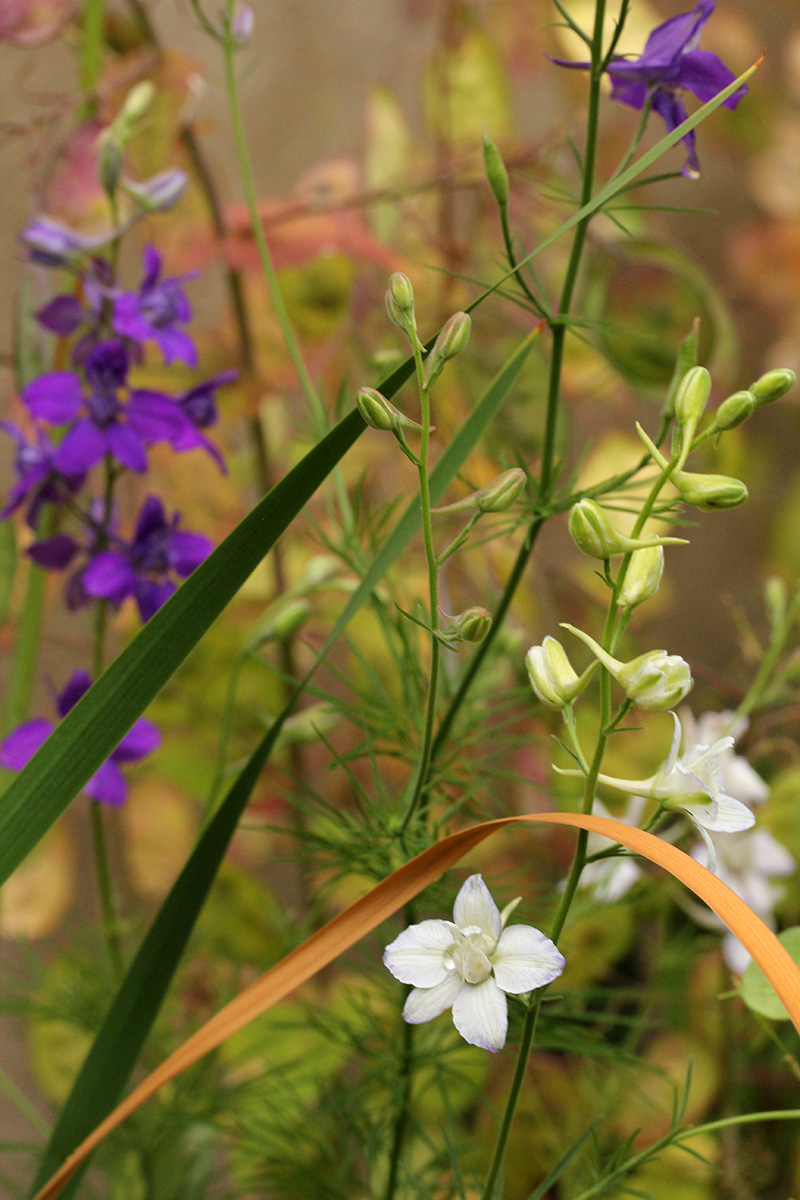the only larkspurs in the belmont backyard are purple and white, no pinks. i'd like to grow more in future seasons. being poisonous, their seedlings don't get too many pests.