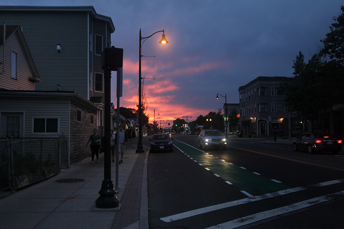 i returned to cambridge around 6:30pm. i found GC in the living room watching breaking bad. i thought he already ate but around 7:30pm he stopped to make dinner. that made me anxious as the somerville fireworks was at 9:15pm, but i wanted to get there a bit early to take photos. besides, i didn't want to bike and it'd take us probably 30 minutes to walk up to trum field. i waited anxiously in the living room for GC to finish eating. finally i had enough and went into the kitchen to check, where i found him already finished with dinner and was simply watching some show on his tablet. "are you done? let's go then," i told him, as we finally left the house by 8:20pm. i had my wide angle lens on the camera body and my 28mm f/1.8 in case i wanted to do some low light night photography.