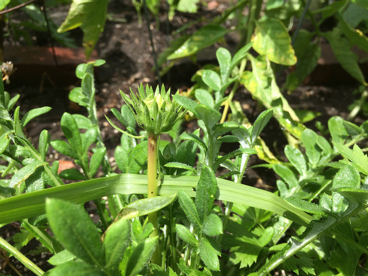 i went to the community garden since i didn't get a chance to go yesterday. nothing new except a single gazania flower bud, ready to open any day now. for an annual they don't seem to grow particularly fast, but pests for the most part seem to keep away from the leaves. i also decided to stop growing the squash seedlings under the protective plastic dome as they're starting to get a bit leggy. this meant i had to use other methods to keep the slugs from eating these seedlings a 3rd time.