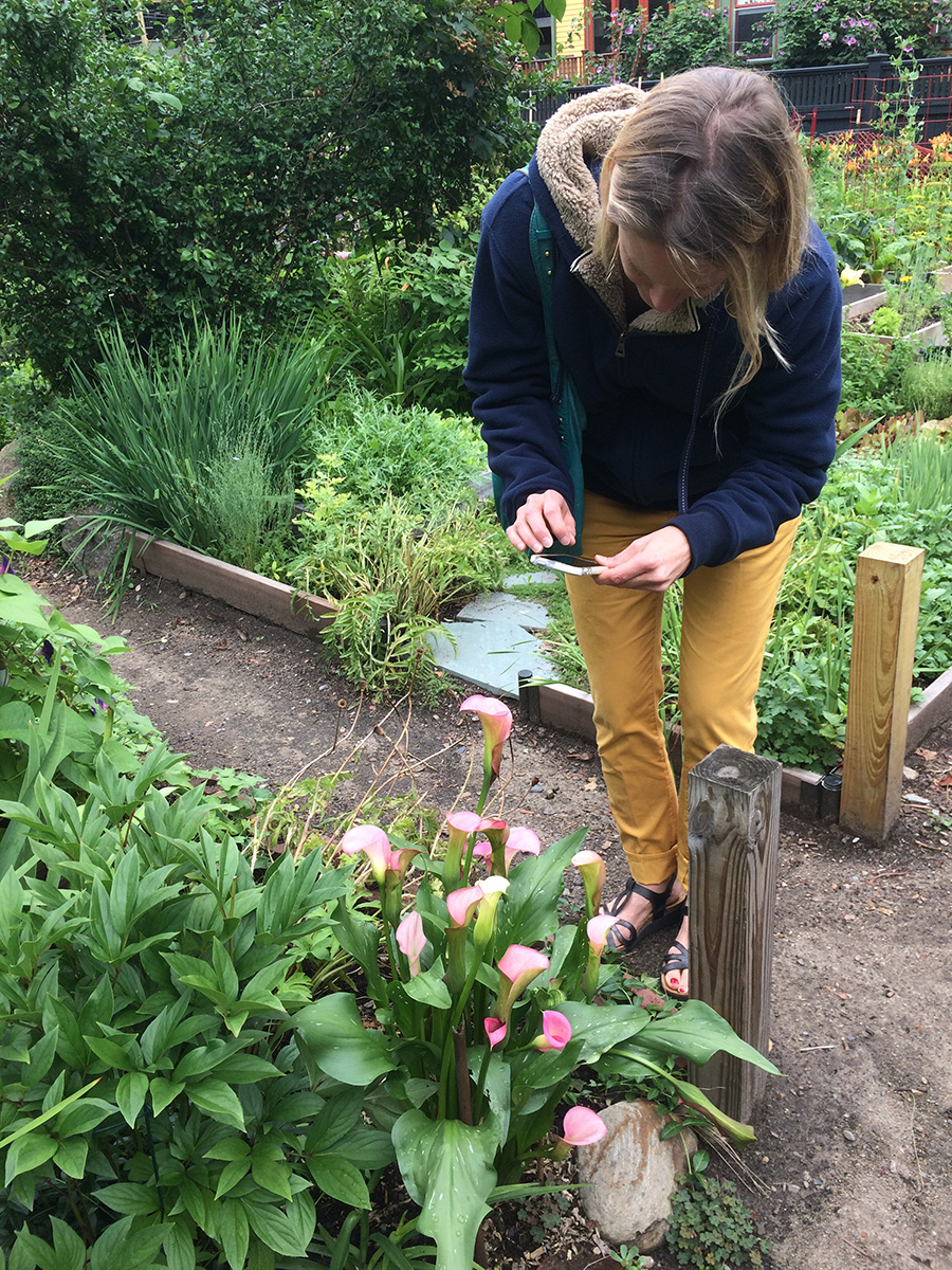 i took eliza on a detour to my community garden plot. dave just happened to be there, whom i haven't seen all season long. he ended up taking up all my time, telling me how he went on a 2 month trip to southeastern china then northern vietnam. "you should go [to vietnam]," he told me; i didn't bother telling him i'd already been. only after he finally left did i have a chance to show eliza the plants i was growing, and take a tour of some of the other plots.