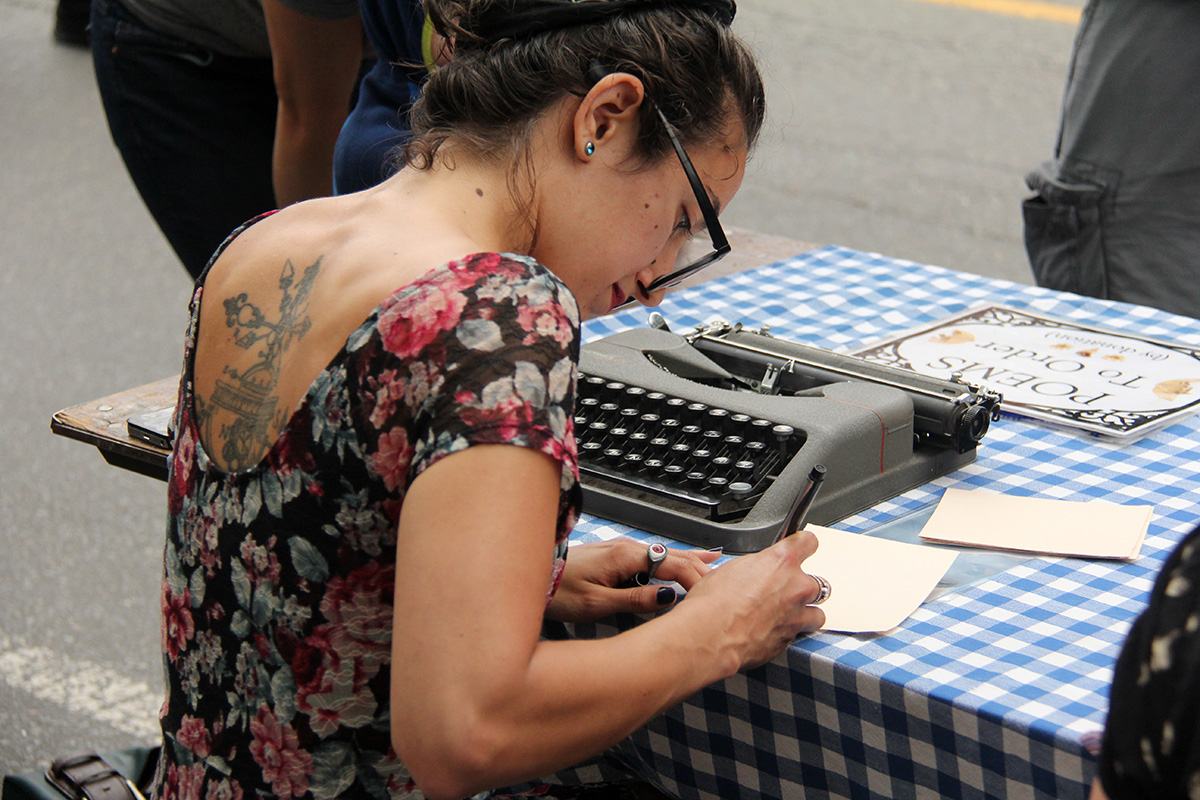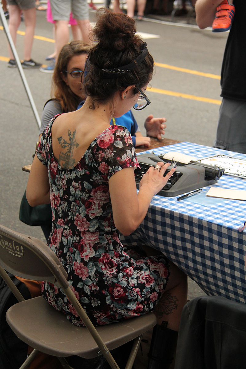 the last and first time i went to the somerville artbeat festival was back in 2009. it must not have made an impression because i completely forgot it. it was mostly handicrafts, with a smattering of food vendors in the central square area. the most interesting thing i saw was a pair of young women typing poems on typewriters for tips. not since the mid-80's have i seen a real typewriter in action.