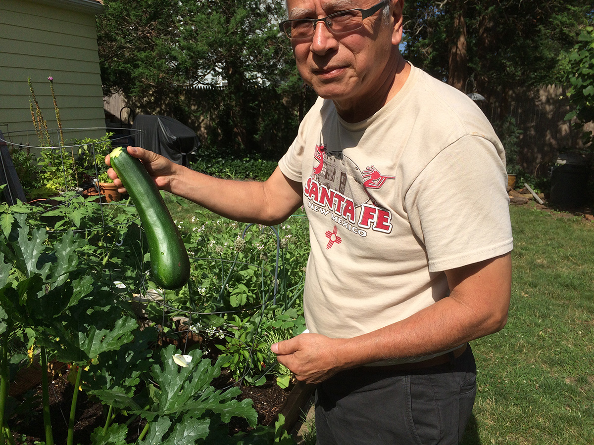 my father came home while i was in the backyard watering the garden. we managed to harvest a single zucchini, the first of the season. the plants themselves - composed of 3 seedlings - are taking over RB1, overshadowing the hot peppers and eggplants. so far the zucchinis have remained parasite-free - no signs of squash borers - but a few zucchinis developed strangely, like maturing only halfway while the rest atrophies and then turns yellow and rots. maybe those were just the early fruits that didn't grow correctly. all the new small zucchinis look fine.