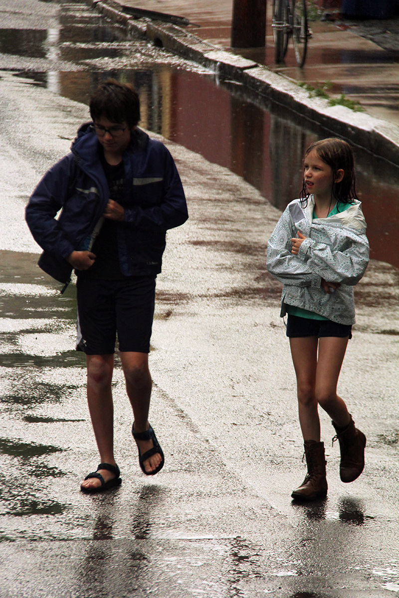 shortly after GC came home, it suddenly started to rain. torrential downpour, the kind that quickly flooded the streets. it didn't last very long, 20-30 minutes at most. glad i didn't go water my garden plot since this more than takes care of the watering.