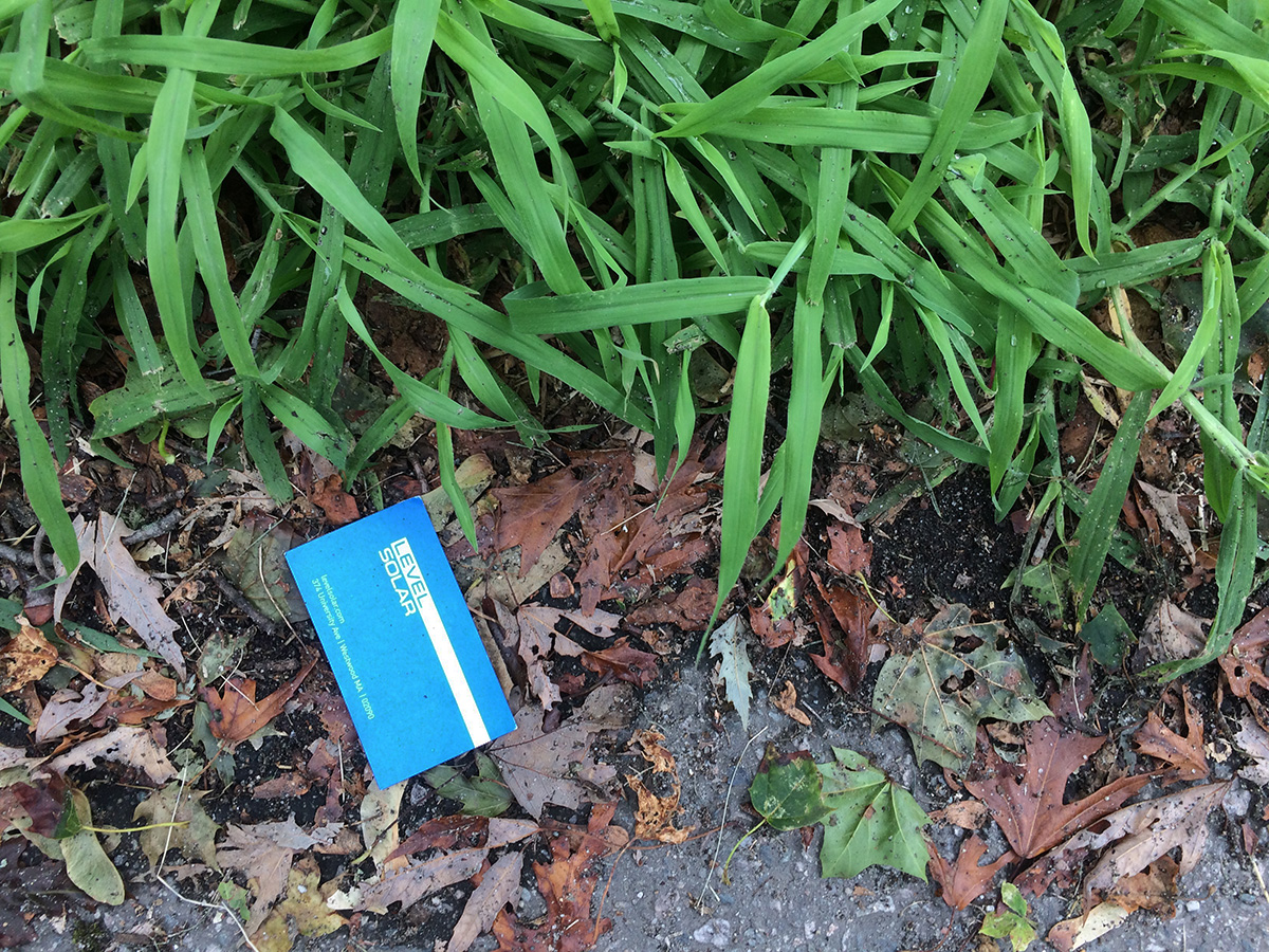 i wanted to get in touch with level solar and tell them we weren't interested, but i didn't have arthur's e-mail address (he never sent it to me). so i decided to ride the motorcycle to belmont to find his business card. as i approached the house, i noticed a car leaving our street. could it be? hanging from the door was a notice from level solar saying that brian just finished his site survey. drats. i was hoping to inform arthur beforehand, so they wouldn't have to waste time doing a survey. i grabbed his business card and went to the cafe.
