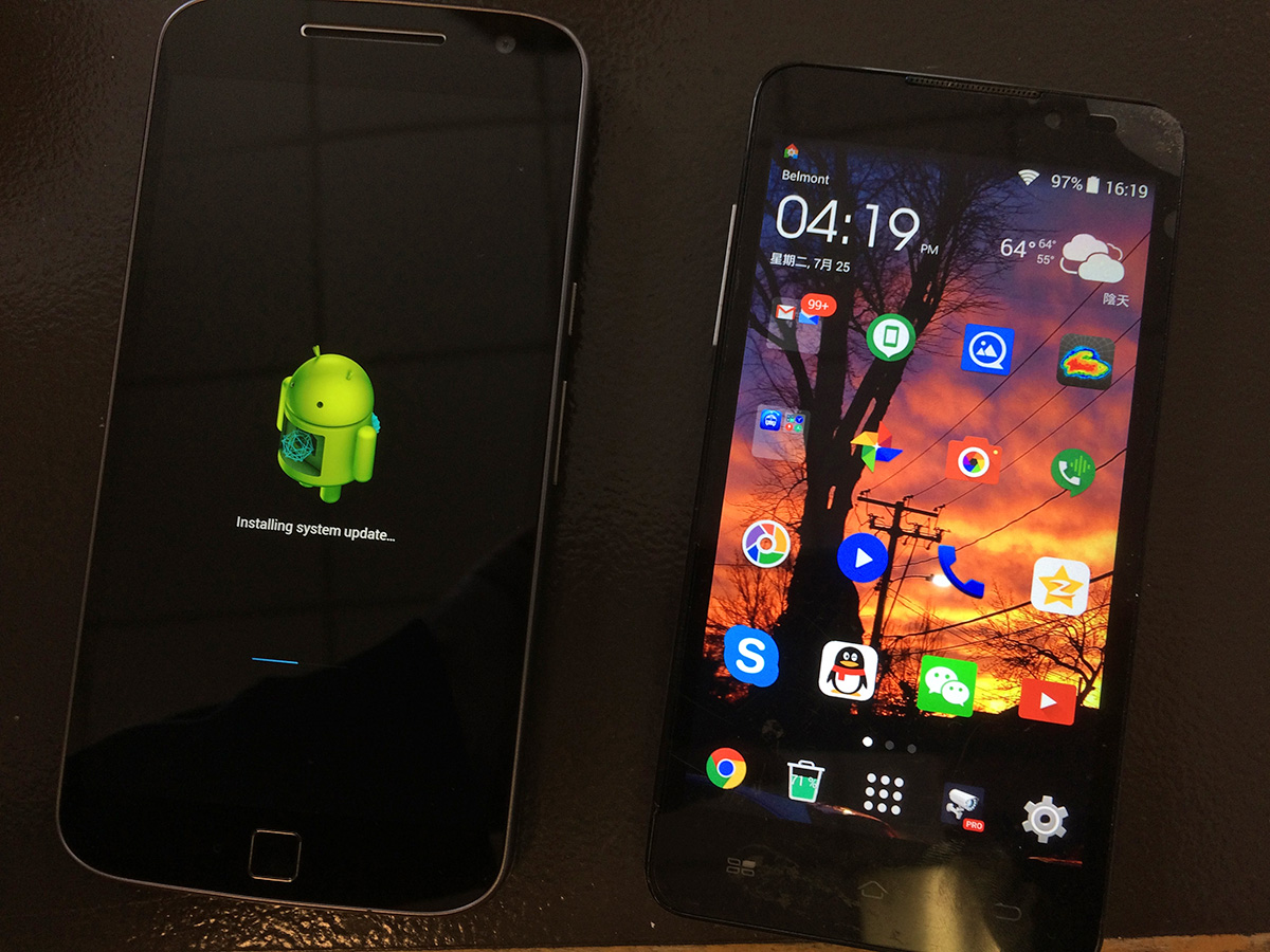 the moto G4 marks my father's 3rd android phone (and the first one with US data). prior to that he had the coolpad F1 8297W that i got him back in 2014 which he still carries despite having a smaller 5" screen and running android 4.2. next i gave him the xiaomi redmi note 3 that i got in china spring of last year. that one is actually a very good phone as it's only a year old so still comparable to modern phones. well-designed, the only drawback of the xiaomi is the MIUI OS which has some annoying quirks. and now finally the moto G4. he was using an LG flip phone as his regular phone, but he mistreated that phone so badly - flipping closed the phone with too much force - that the hinge was broken and the phone prone to losing power with warning. it's actually the 3rd flip phone he's managed to destroy, all with broken hinges (he inherited my flip phone when i transitioned to the iphone a few years back).