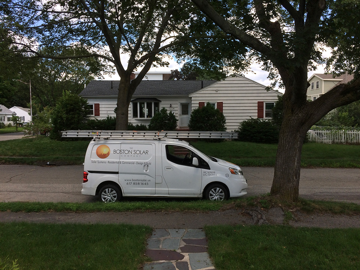 while taking a shower around 11:40am, i received a phone call from the boston solar site surveyor dan. i thought it was just to remind me we had an appointment at 1pm, but he said he was actually at the house now and asked if i was home so he could do the survey early. there's early then there's 1-1/2 hours early. at first i was annoyed, but then figured the sooner the inspection gets done, the sooner i wouldn't have to wait. so i told him i could be there in 15-20 minutes. i quickly got dressed, with a load of laundry tumbling in the dryer, then sped off to belmont via motorcycle.
