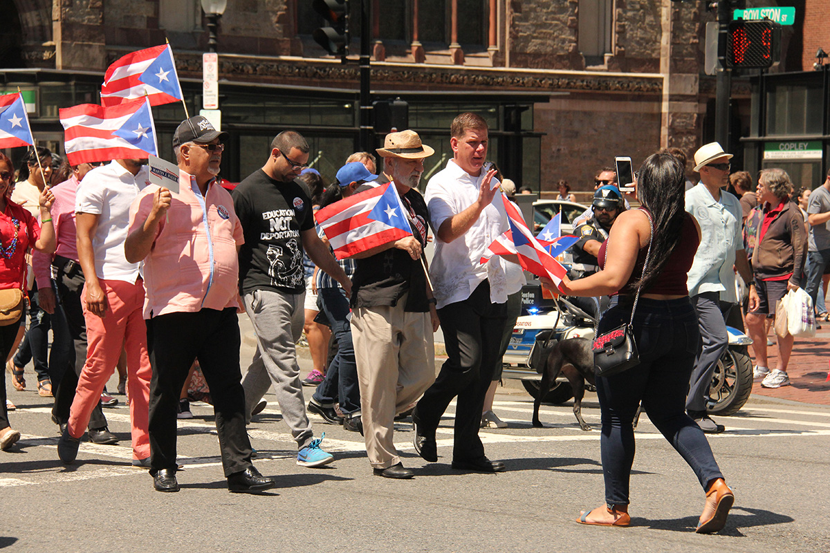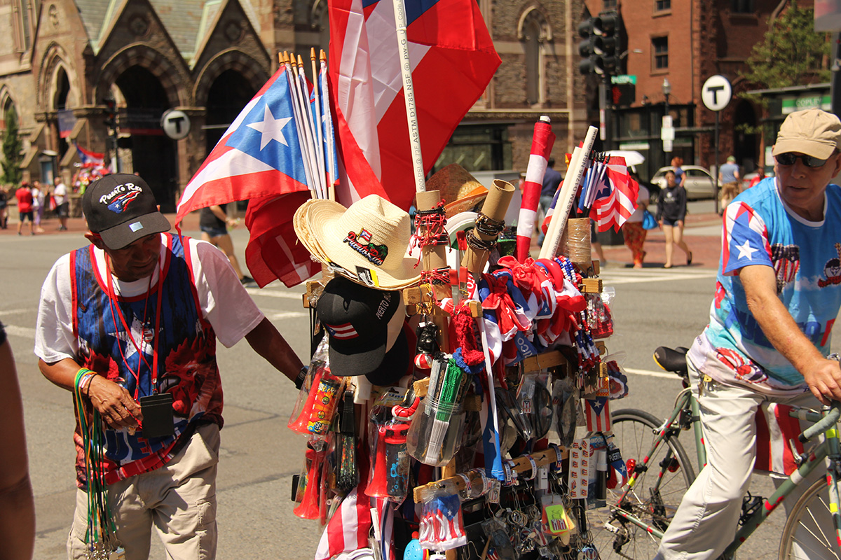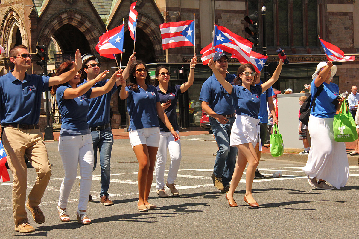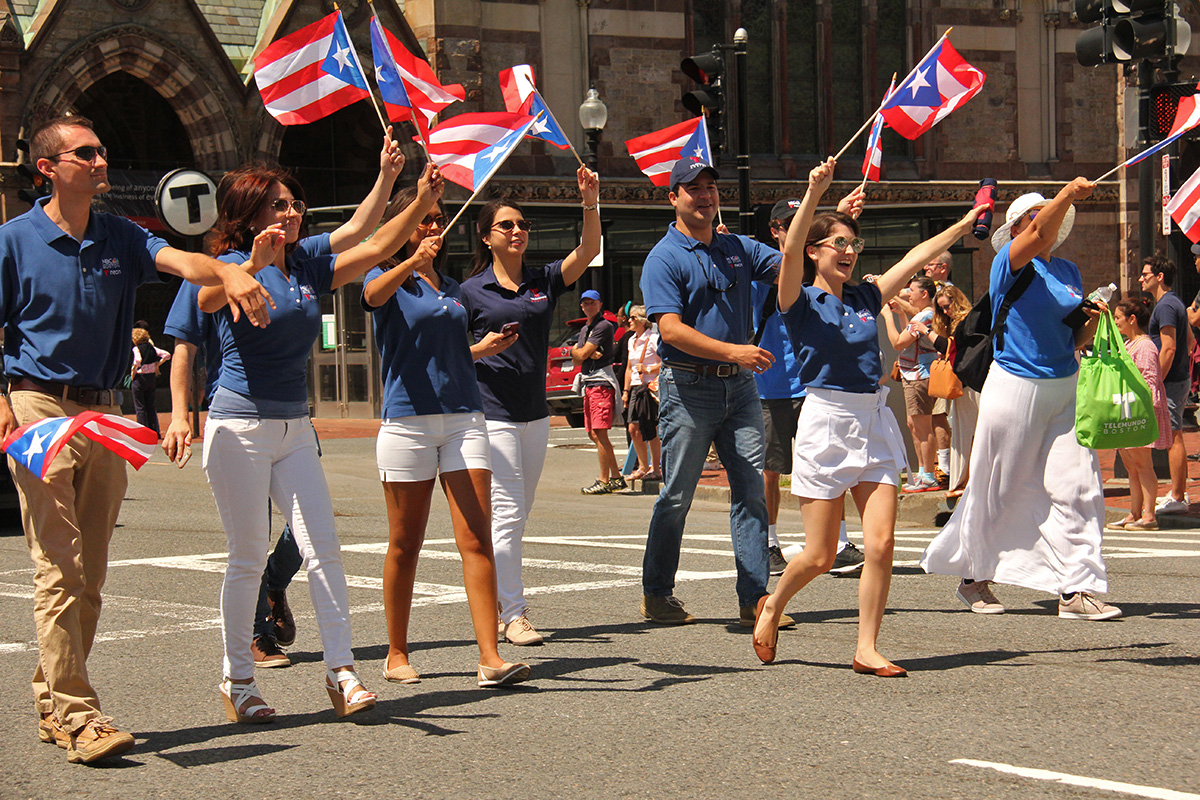 we didn't leave until 11:17am, taking us 24 minutes of riding to get to copley square. it was a nice day, not too cold, not too warm, although it felt hotter after a bit of riding. i wore pants but it was definitely shorts weather. i've never taken GC into boston before via bike, and i haven't biked into boston myself in a while. the farthest we've gone in the direct of boston was just to central square. we found a post to lock the bikes to along boylston street and waited at the southeastern corner of dartmouth and bolyston, my usual spot. actually not exactly usual, as it was a sunny day and GC suggested we waited underneath a tree. for for shade, but bad for photography, as i typically like to shoot some crowd pics before the parade begins. we stepped up to the curb once the parade started, but a puerto rican family to my left kept crowding into the street, blocking my view.