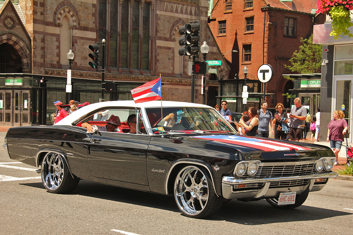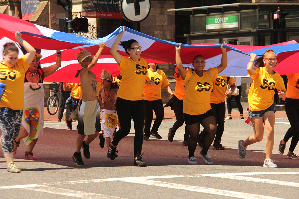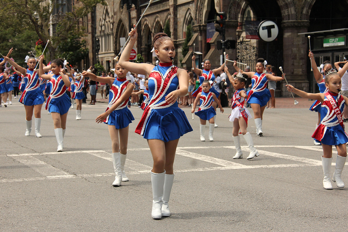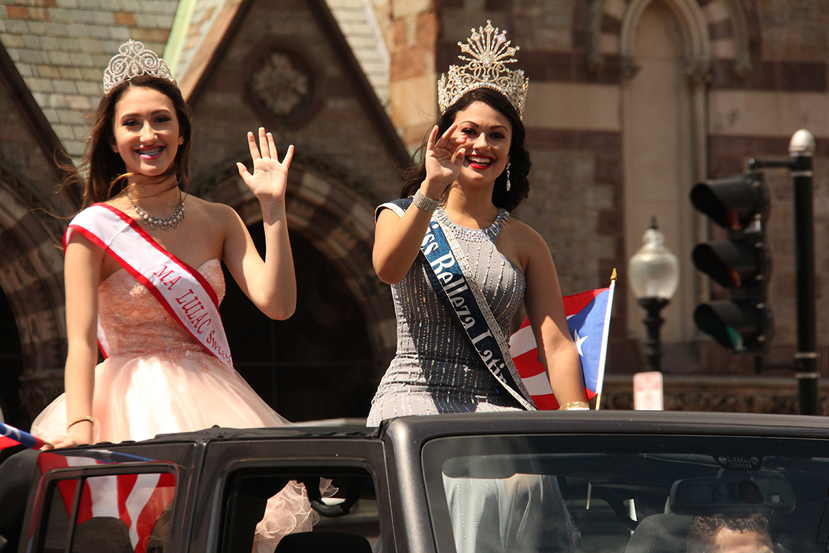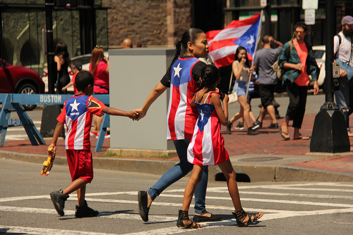 we didn't leave until 11:17am, taking us 24 minutes of riding to get to copley square. it was a nice day, not too cold, not too warm, although it felt hotter after a bit of riding. i wore pants but it was definitely shorts weather. i've never taken GC into boston before via bike, and i haven't biked into boston myself in a while. the farthest we've gone in the direct of boston was just to central square. we found a post to lock the bikes to along boylston street and waited at the southeastern corner of dartmouth and bolyston, my usual spot. actually not exactly usual, as it was a sunny day and GC suggested we waited underneath a tree. for for shade, but bad for photography, as i typically like to shoot some crowd pics before the parade begins. we stepped up to the curb once the parade started, but a puerto rican family to my left kept crowding into the street, blocking my view.