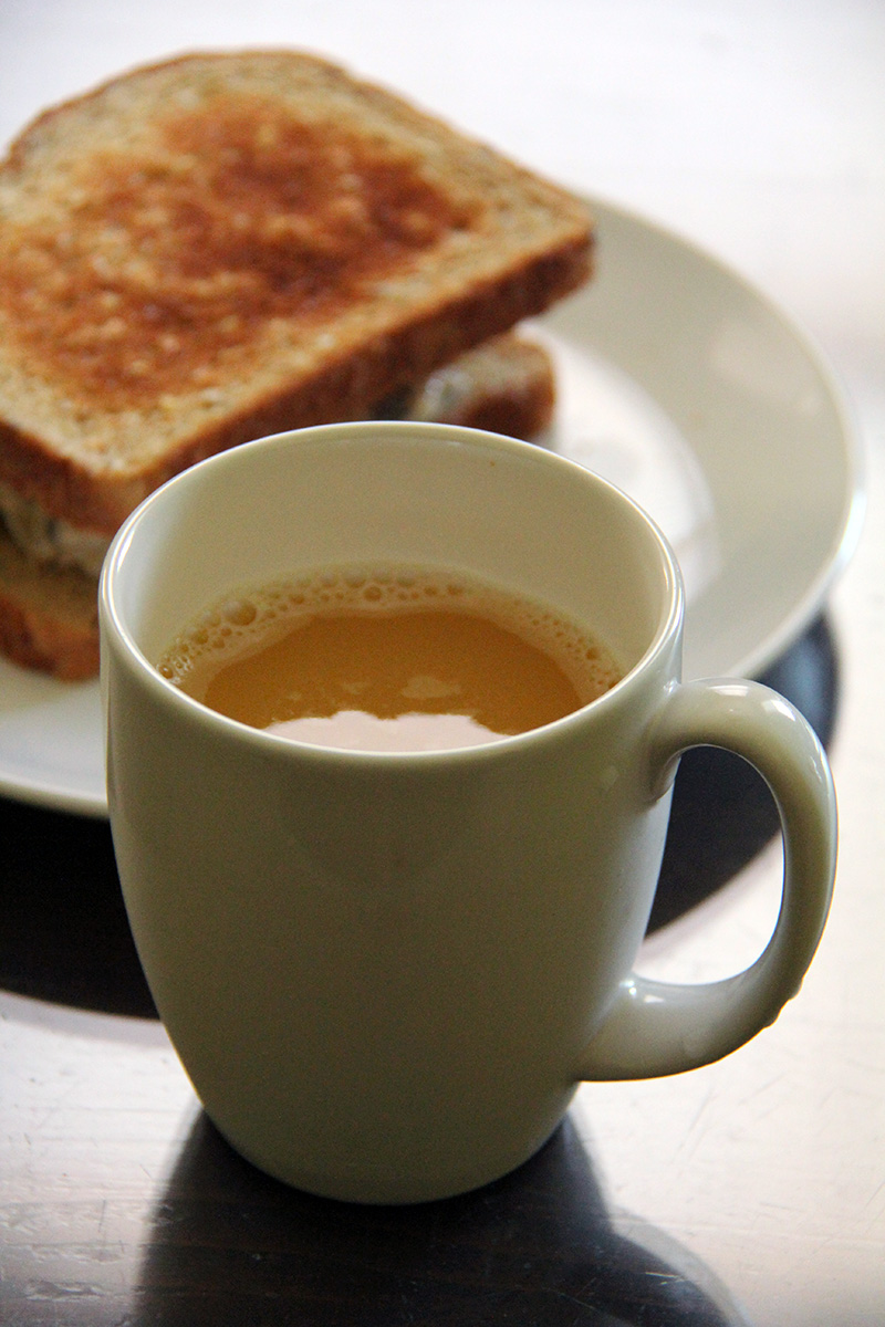he asked me when it was, i told him noontime, and we'd leave around 11am, giving me about an hour to get ready. i used the bathroom, showered, then made a tuna fish sandwich along with a mug of fruit juice served in the new corelle mug i found yesterday. afterwards i went outside and brought out 2 bikes. i was going to ride the trek utility, but the rear brake was sticking, so i opted for the fuji instead. i oiled the rusty chain on the trek mountain bike.