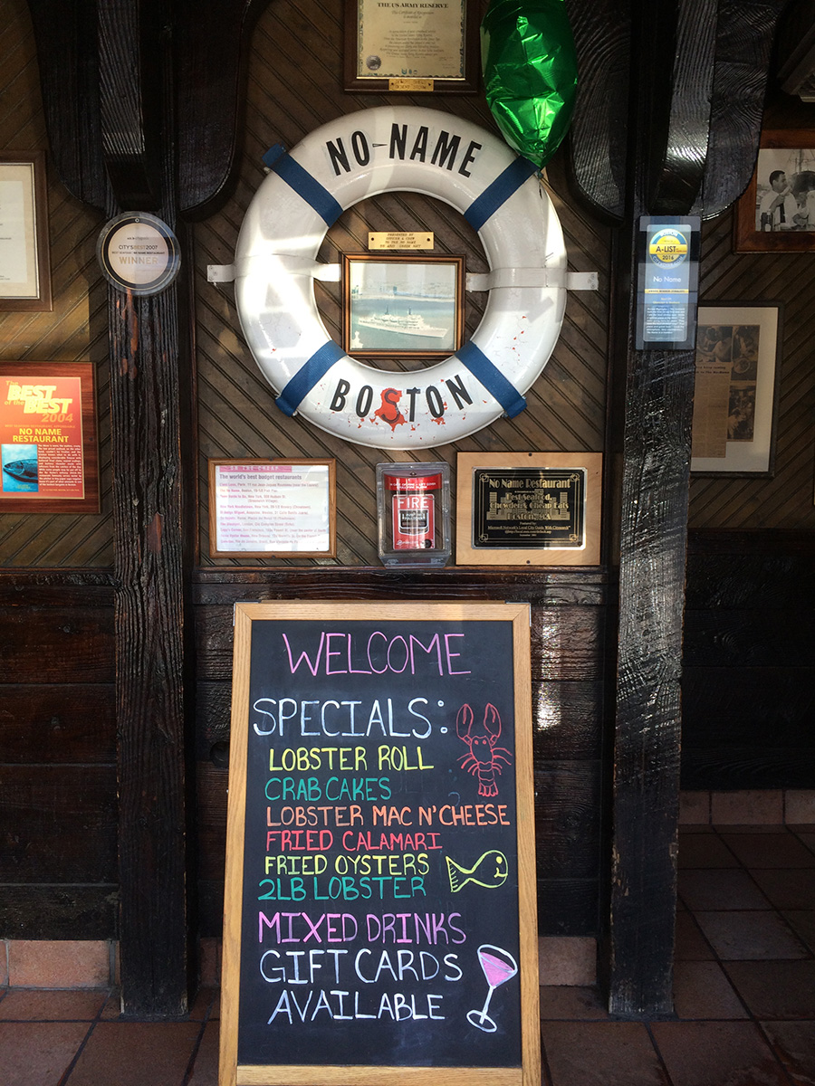 it took a few peeks of google maps to finally find no-name seafood. did they move? probably, because i remember they used to be someplace else. i remember they used to be self service dining, but now it was more a typical sit-down restaurant. when i saw the menu i knew right away this was a tourist trap. one of the reasons i came here was expecting to find some cheap quality seafood, but the price was comparable to other local seafood joints, meaning it was expensive. as for the selection, there wasn't very much, not compared to belle isle seafood. the place gets rave reviews, but i must be missing something, because i'd never recommend the place. a sleepy waitress sat by the door and said we could sit anywhere.
