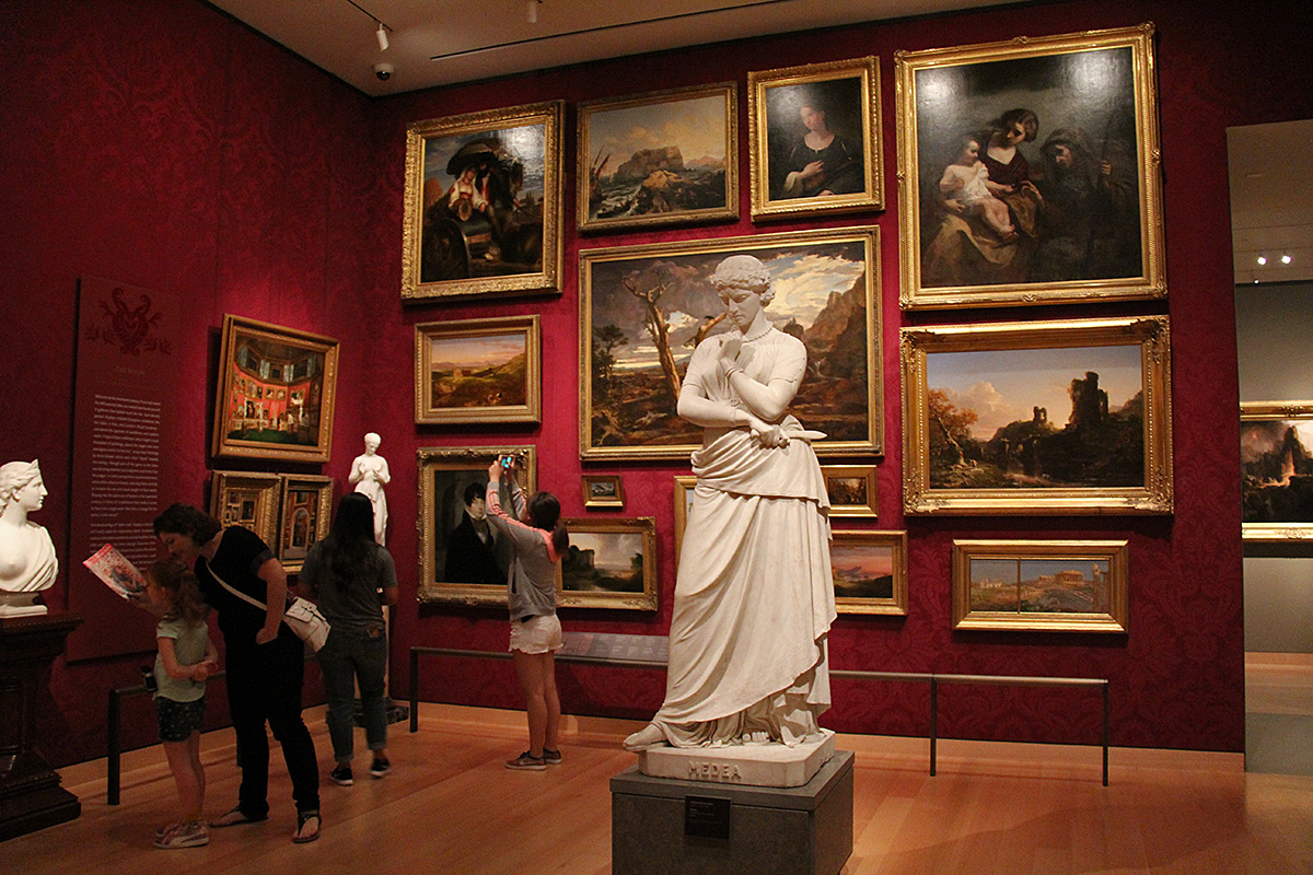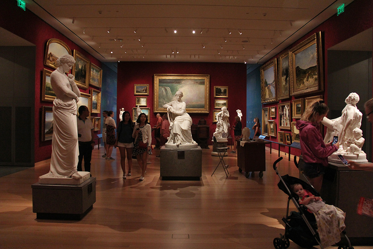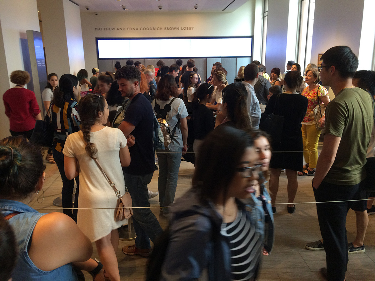 there didn't seem to be many people outside, but inside the museum there was a long line as people waited to claim their free ticket. we stood behind a few millenials, who kept holding up the line because they were too busy talking with one another. elsewhere was a large chinese family with 2 annoying boys who looked especially spoiled, vacationing with their family in the US for the summer, a few members of their entourage wearing disney t-shirts.