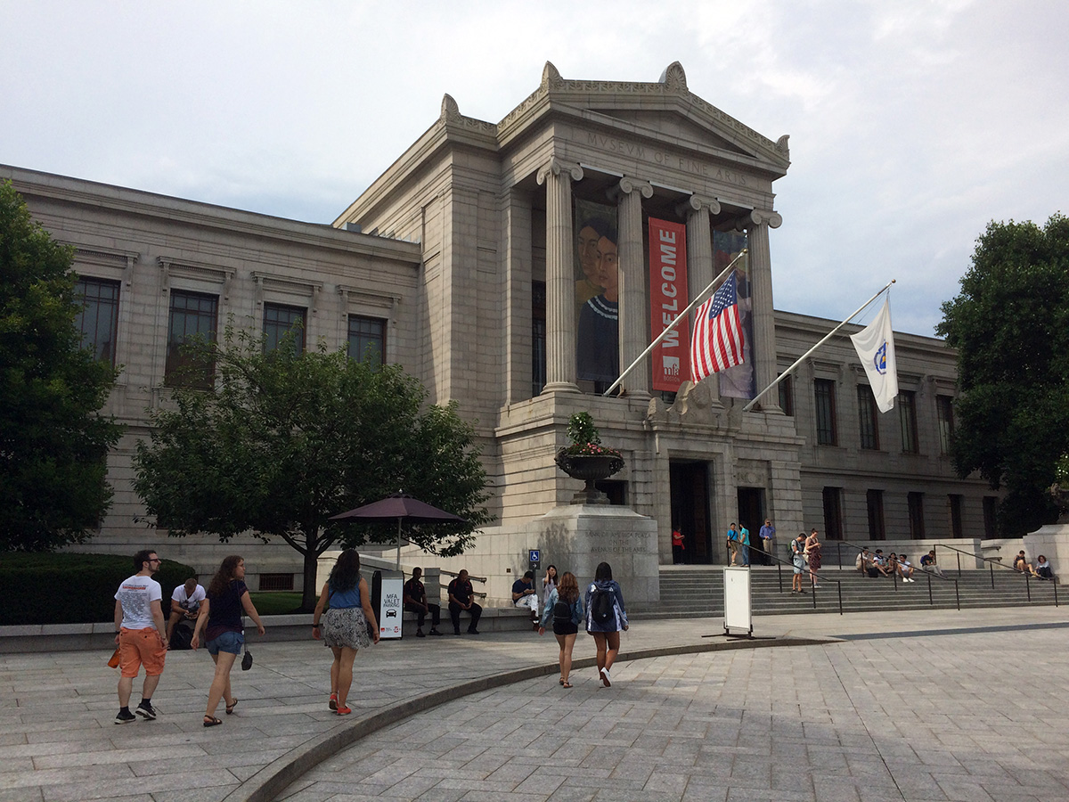 i was taking GC to the museum of fine arts today. i told him about it when he first arrived, but knowing him (a self-confessed homebody), he would never go unless someone took him. i also thought he'd appreciate it, since he told me he visited the met when he visited new york. just so happens i was in the mood for some museuming (last time i was at the MFA was back in 2015 with eliza where we saw the hokusai exhibit), so figured i'd take him. late wednesday afternoons beginning at 4pm the MFA is free for all (though a donation is suggested but not required). in order to maximize our museum time, we decided to get there at 4pm, so agreed to meet at harvard square at 3:30pm. the weather looked very threatening with dark ominous clouds and there was a forecast of some heavy rain but we'd be in the museum by that point but i still brought my umbrella anyway just in case. i arrived at harvard square the same time as GC, waving to me from across the t-shirt in his red manchester united t-shirt. we made very good time and got to the MFA exactly at 4pm.
