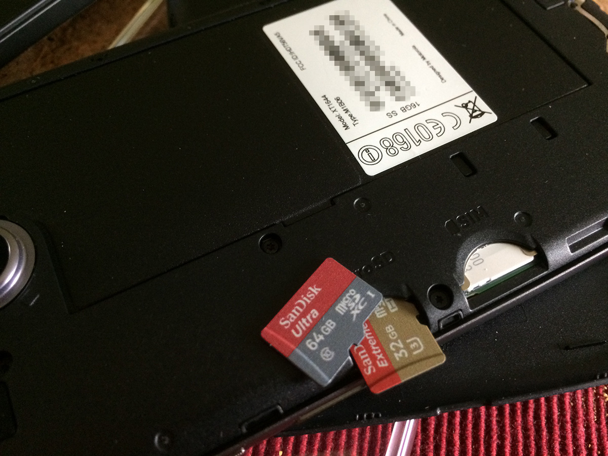 only when i was about to install the new card did i realize that it was actually a 32GB card and not 64GB (which was probably why i never used it in my dSLR), but my father said that was more memory than he typically uses anyway. first step was migrating all the data back onto the 16GB internal memory from the 64GB external card. fortunately we made the switch recently, so there wasn't a lot of data to transfer, just some photos. next i had to tell the system to forget the previous external memory card. finally, after inserting the new 32GB card i reformatted it as adoptable storage. it took seconds to reformat, but about a minute to migrate all the data back onto the external card. the one good sign was it didn't say anything about the new card not being fast enough, so i think it's going to work.