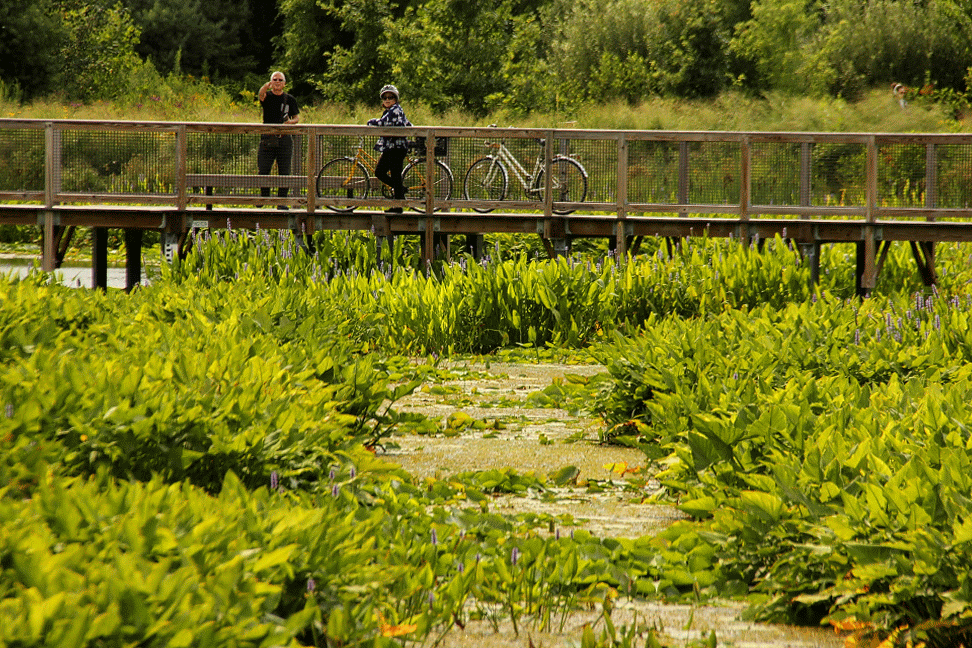 we left davis square around 3pm. on our way back we stopped at the conservation land, biking around the marsh on the boardwalk. all sorts of late summer wildflowers were in bloom: goldenrod, pickerelweed, vervain, ironweed, black-eyed susans, teasels, thistles, and sumac.
