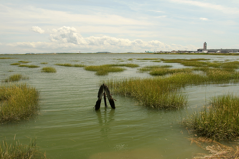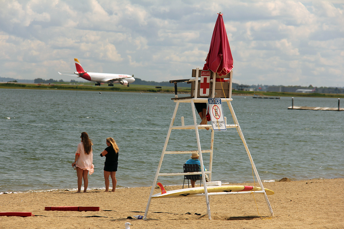 since constitution beach is located just across the water from logan airport, i was picturing planes coming in close to the people on the beach. and during the time i was biking, i noticed a lot of planes above the skies of everett and chelsea. but the thing i didn't realize about constitution beach is despite the close proximity to the airport, none of the runways line up with the beach, so you would never see any flying overhead. actually, smaller planes do fly overhead, but none of the larger ones.