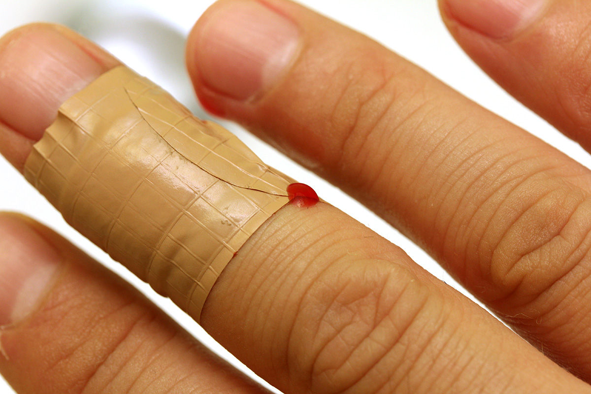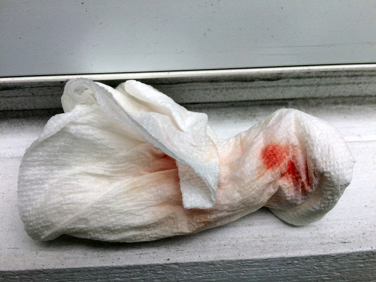 after returning home and taking a shower, i unwrapped the bandaid to put on a new dressing. some blood was seeping out but that was only because i'd gotten some water underneath the old bandaid. the wound didn't seem that serious and i thought about covering it up with that glue skin solution, but decided not to and just let the cut heal on its own.